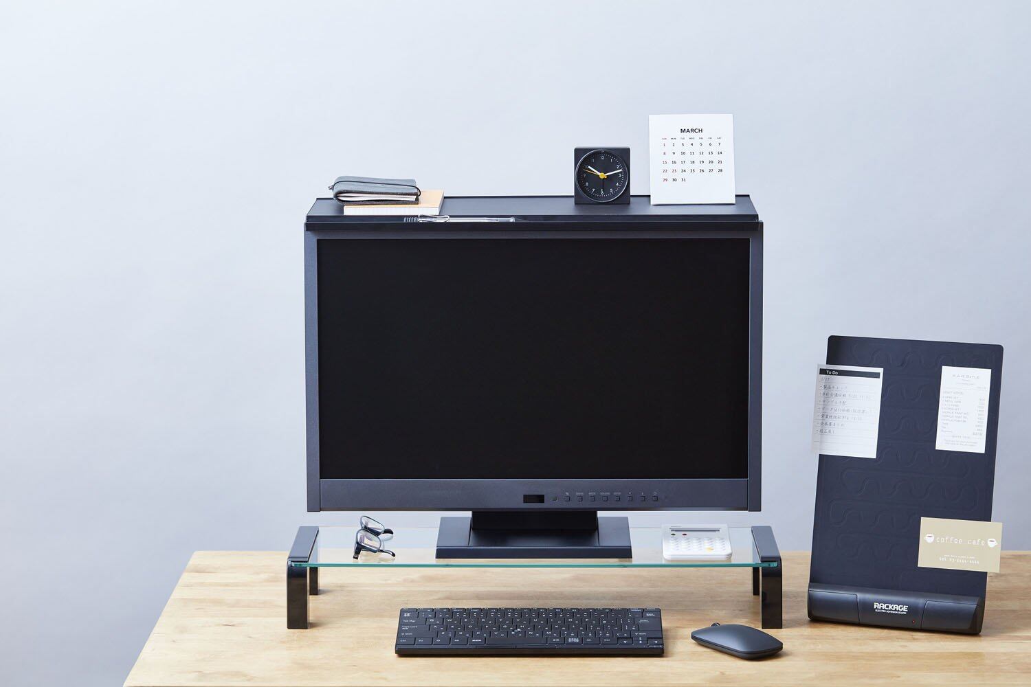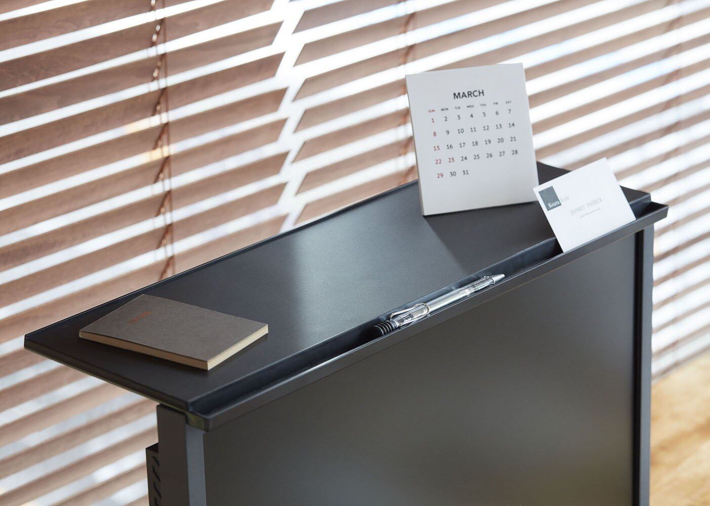 机のスペースを有効活用できる、液晶ディスプレイ上の小物置き