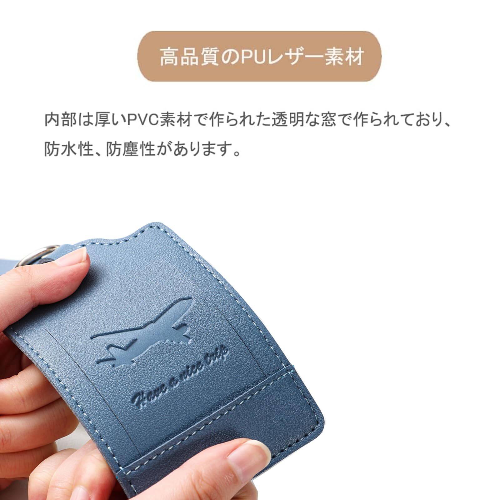 【個人情報の丸見えを防げる】前面カバーは個人情報を保護し、勝手に開かないようにスロット設計て完璧に隠されています。内部は厚いPVC素材で作られた透明な窓で作られており、防水・防塵性があります。