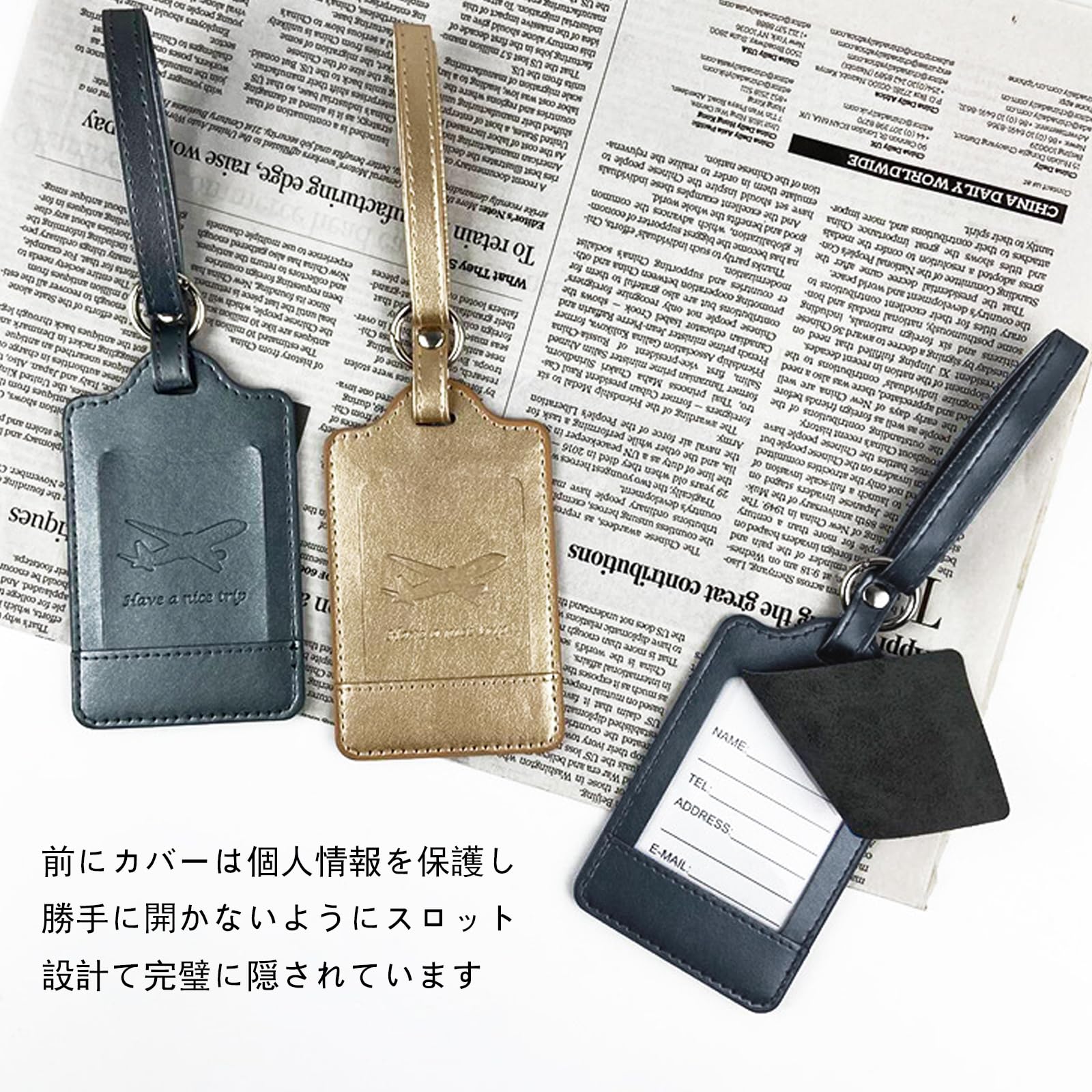 【荷物の紛失防止】各バッグ用ネームタグはネームカードが2つ付き、更にネームカードの両面にも住所、氏名、電話番号が書き込め、簡単に自分の荷物を識別できます。万が一紛失してしまった場合は、書かれた連絡方法があるので荷物を取り戻ってくるのが可能です。