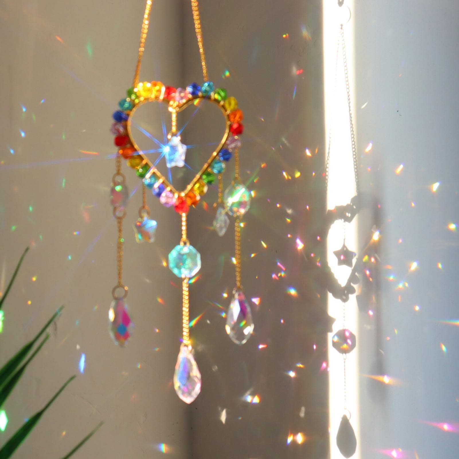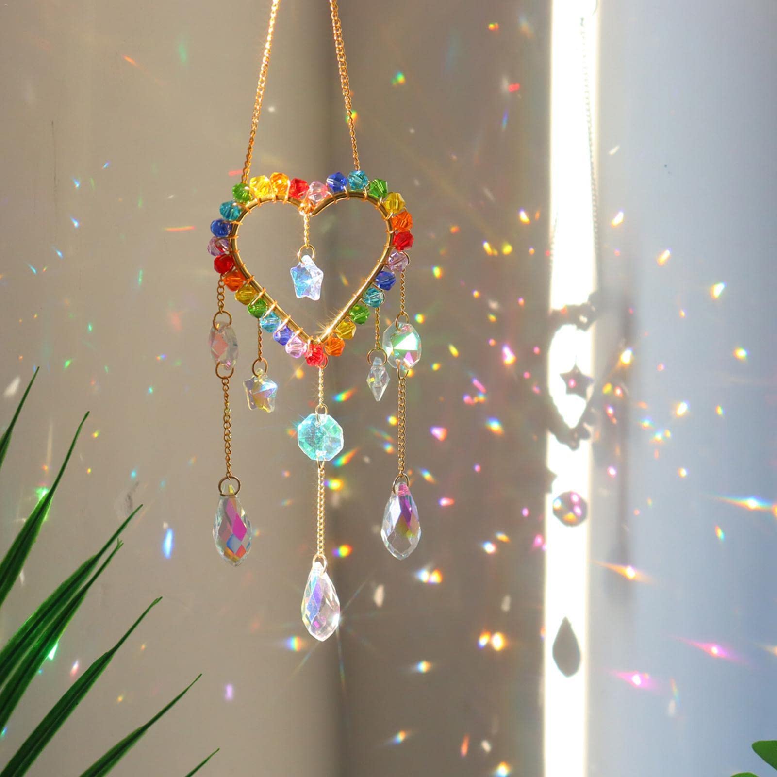 クリスタルサンキャッチャー - クリスタル プリズム ハート ドリーム キャッチャー - ぶら下げ風鈴スタイルガーデンレインボーメーカーサンキャッチャーペンダントホームデコレーションギフト