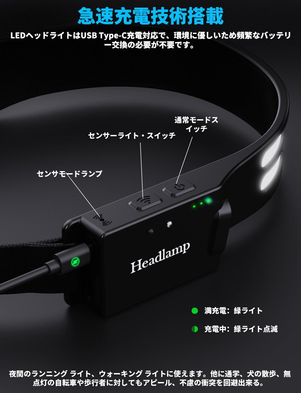 【手を振ることで作動するモーション】内蔵チップは、あなたの指示を感知して、いつでもオン・オフを切り替えることができ、両手を照明のために解放することができる。快適で調節可能なヘッドバンドが付属しているので、ヘッドランプを使えば、仕事、冒険、遊びに両手を自由に使える。