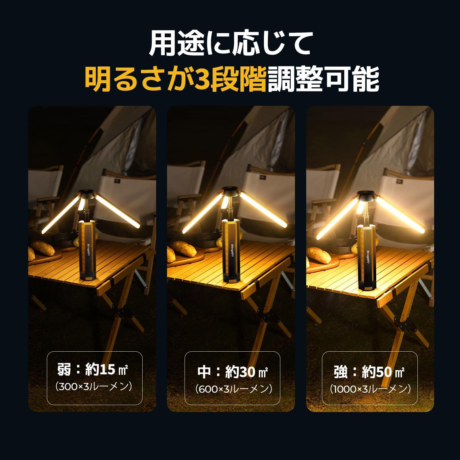 【高輝度3000ルーメン】 BougeRV CL04キャンプランタンは全点灯時に最大3000ルーメンの明るさを提供し、50平方メートルの広い範囲を照らします。キャンプやアウトドアでの夜間活動に最適です。
