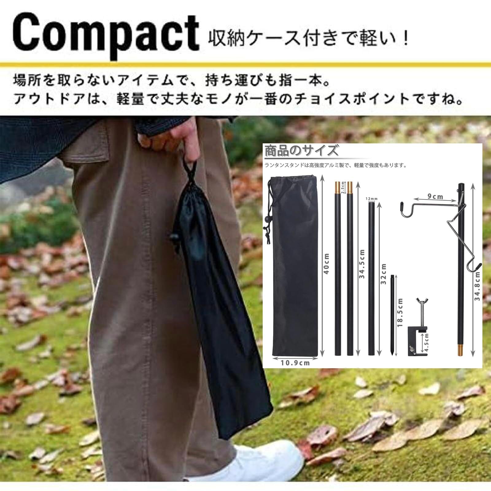 ランタンスタンド ランタンポール ライトスタンド ホルダー アルミ製 コンパクト 軽量 ハンガー2個式 クランプ式 打ち込む式両用 折りたたみ式 屋外 キャンプ 用品 ピクニック 収納袋付き