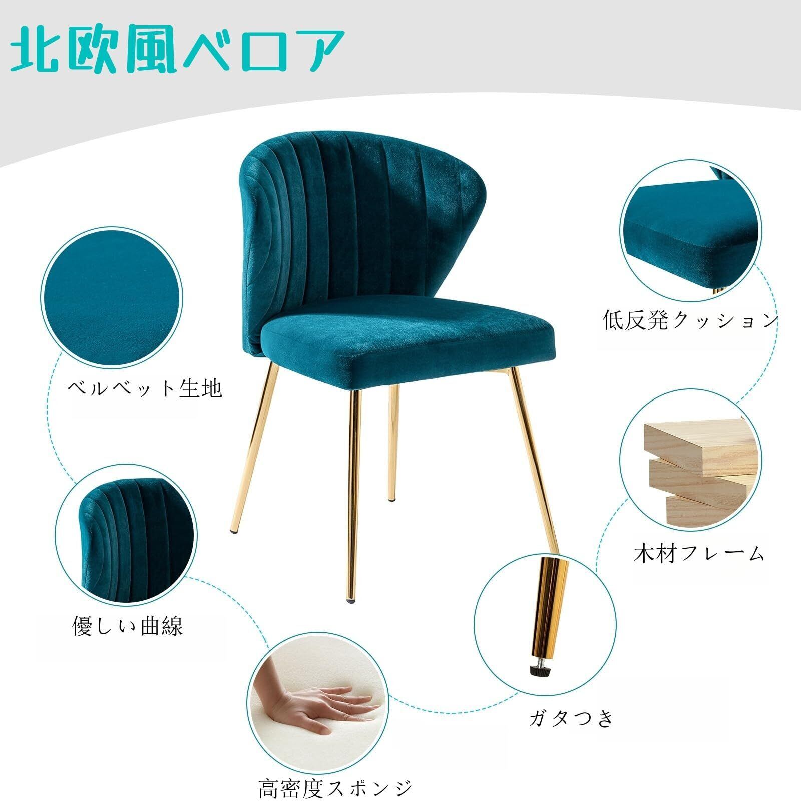 【特価商品】HULALA ダイニングチェア 2脚セット 椅子 ダイニング チェア ベルベット生地 ゴールド脚 ダイニングルーム リビングルーム家具 寝室 美容室 サロン用(青緑) | Cherry Blossoms