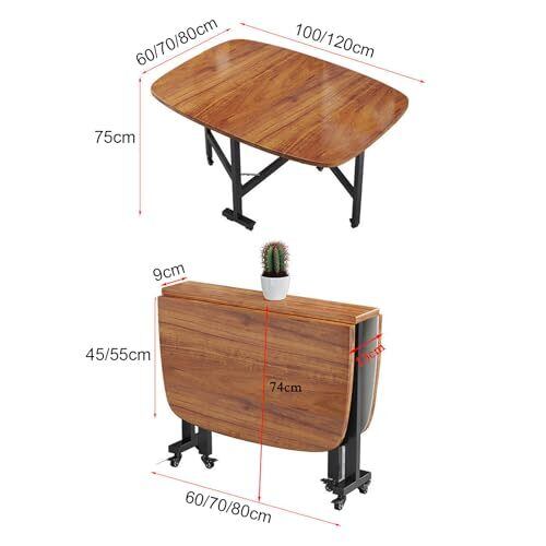 木製折りたたみダイニングテーブル、キャスター付き伸縮式ダイニングルームテーブル、バタフライテーブル、狭いスペース用のドロップリーフテーブル