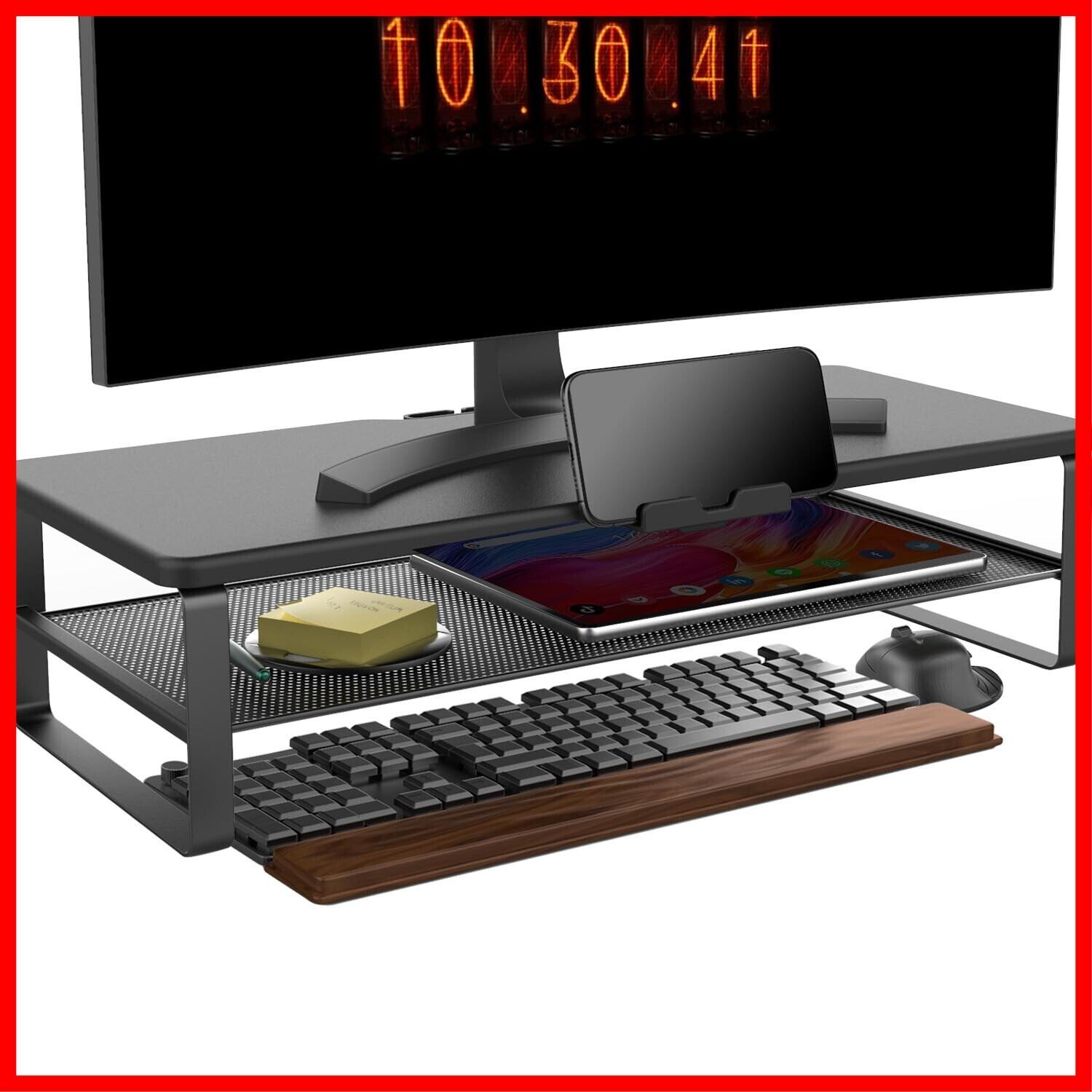 【安定性抜群&実用性】寸法:幅520×奥行230×高さ130mm;耐荷重(約):天板30kg、二段目の棚3kg; 非常にしっかりしたモニタースタンドでした, 安定感あり、滑ったり揺れたりしません。PCモニター、コンピューター、FAX台、iMac、プリンター、ノートPC、TV、LCDディスプレイに適しています。自宅、オフィス、寮やワークスペースへの追加に理想的。個人用はともかく、家族、同僚、友達、恋人などにプレゼントに最適!