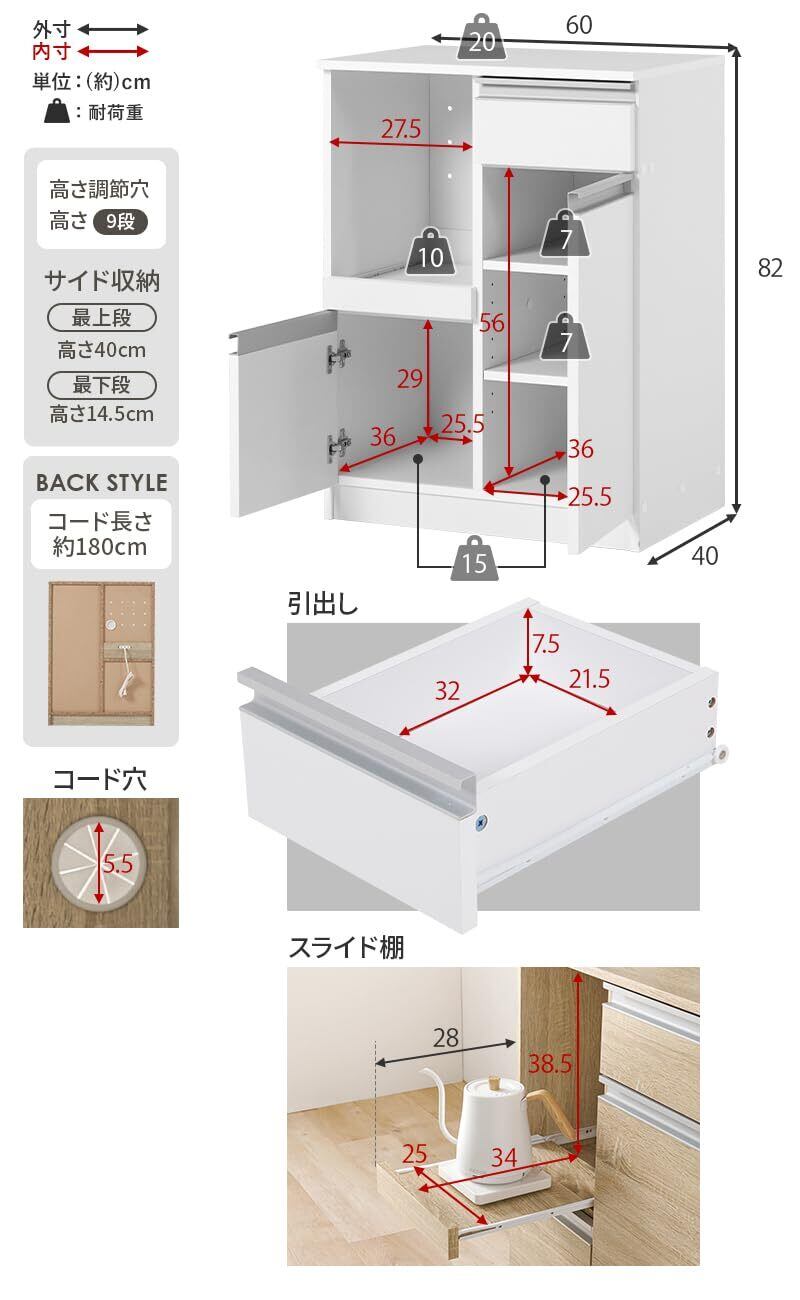 【商品サイズ(約)】:幅60×奥行40×高さ82cm