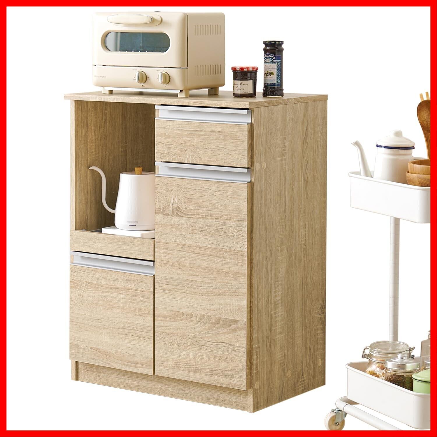 萩原 レンジボード 幅60 食器棚 キッチンラック レンジ台 作業台 大容量 2口コンセント 扉付き ナチュラル VKC-7142NA