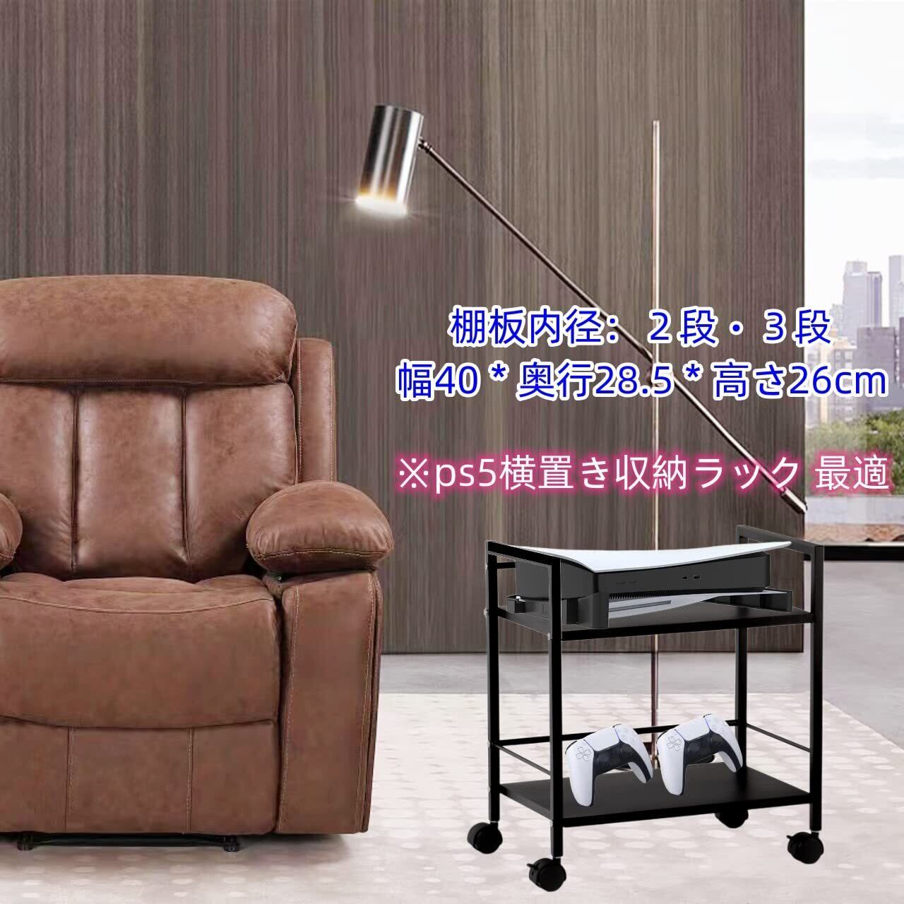 Secchuu スチールラック PS5 横置き 本体2.6kg 耐荷重30kg 幅43x奥行30x高さ48cm スタンド 収納ワゴン プリンター台 デスク下/サイド収納 ストッパー付きキャスター 棚板1枚耐荷重15KG (ブラック, 2段)