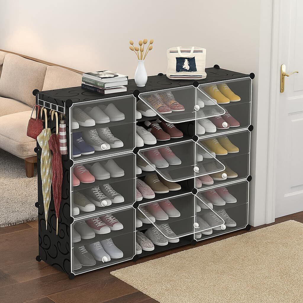 【2022最新】Aissiora 組み立て式 シューズボックス 大容量 下駄箱 クリア 透明扉 スニーカーボックス 靴収納 靴棚 靴箱 収納 クロゼット 玄関 多層 開閉扉 省スペース 防塵・防汚・防水 かび対策 1サイズ長さ40×幅32×高さ30cm 白12ボックス (黒+透明なドア) | Cherry Blossoms