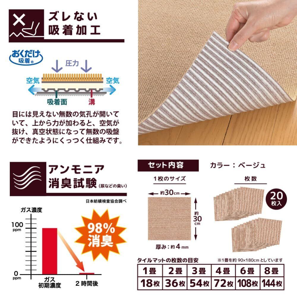 サンコー おくだけ吸着 獣医師推奨 ペット用撥水タイルマット 30cm×30cm 20枚入 ベージュ 犬 猫 サンコー カーペット 【日本製 撥水 消臭 洗える ハサミでカット可】 KM-04