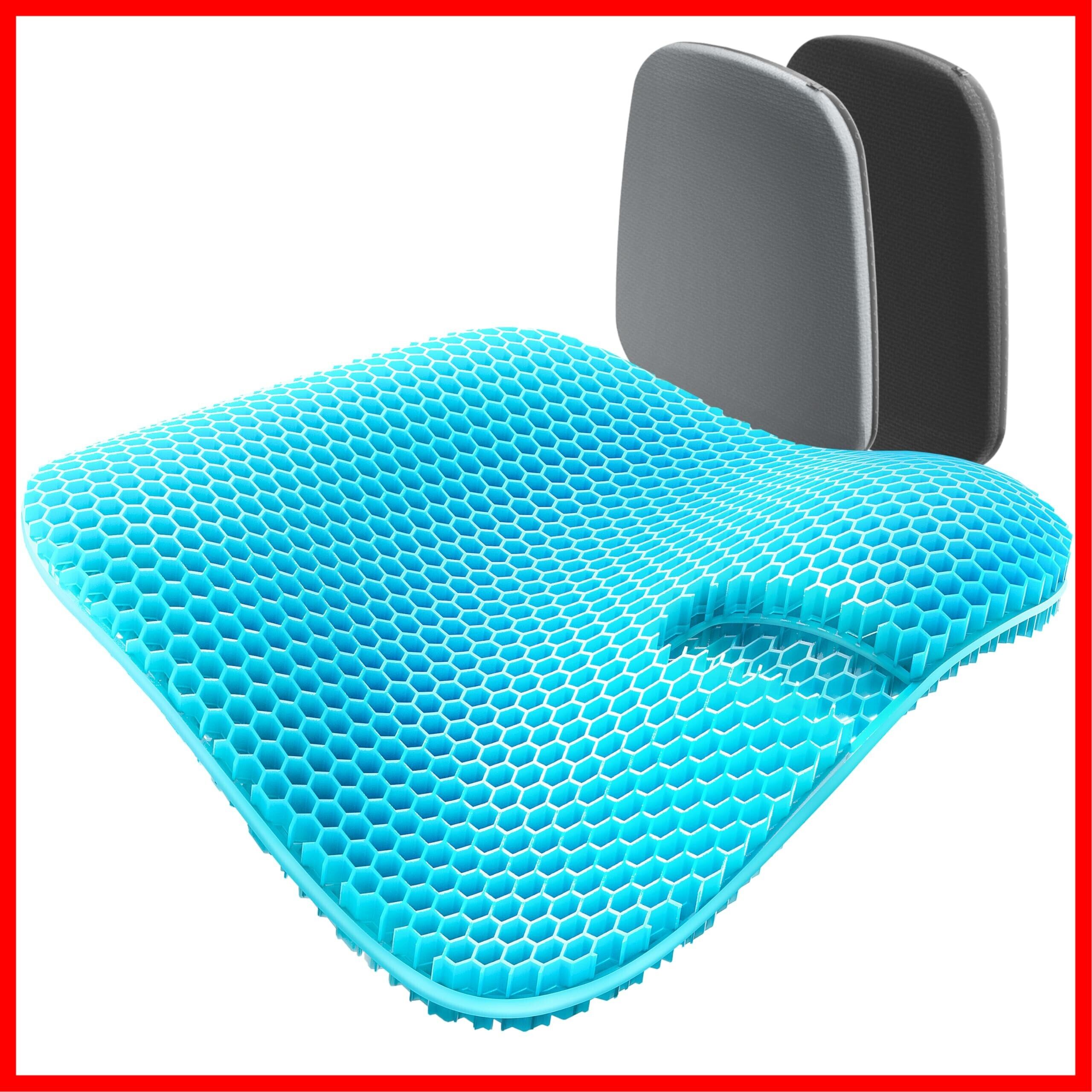 ゲルクッション 【2025モデル 46*44cm特大】クッション 大きめ U字 座布団 ハニカム構造 ジェルクッション 車 薄型 冷感 無重力 持ち運び 体圧分散 衝撃吸収 蒸れない 高通気性 椅子 チェア オフィス 自宅用 2枚カバー付き 四季通用 プレゼント (ブルー)