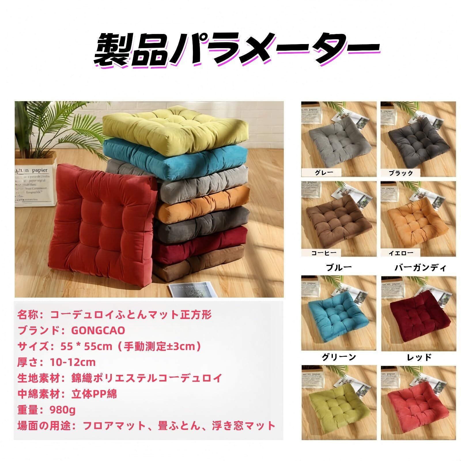大きめで厚めの55cm角 綿製フロアクッション ふわふわかわいい座布団 お尻に優しくオールシーズン 瞑想に最適 和室用 55*55*10CM(Red)