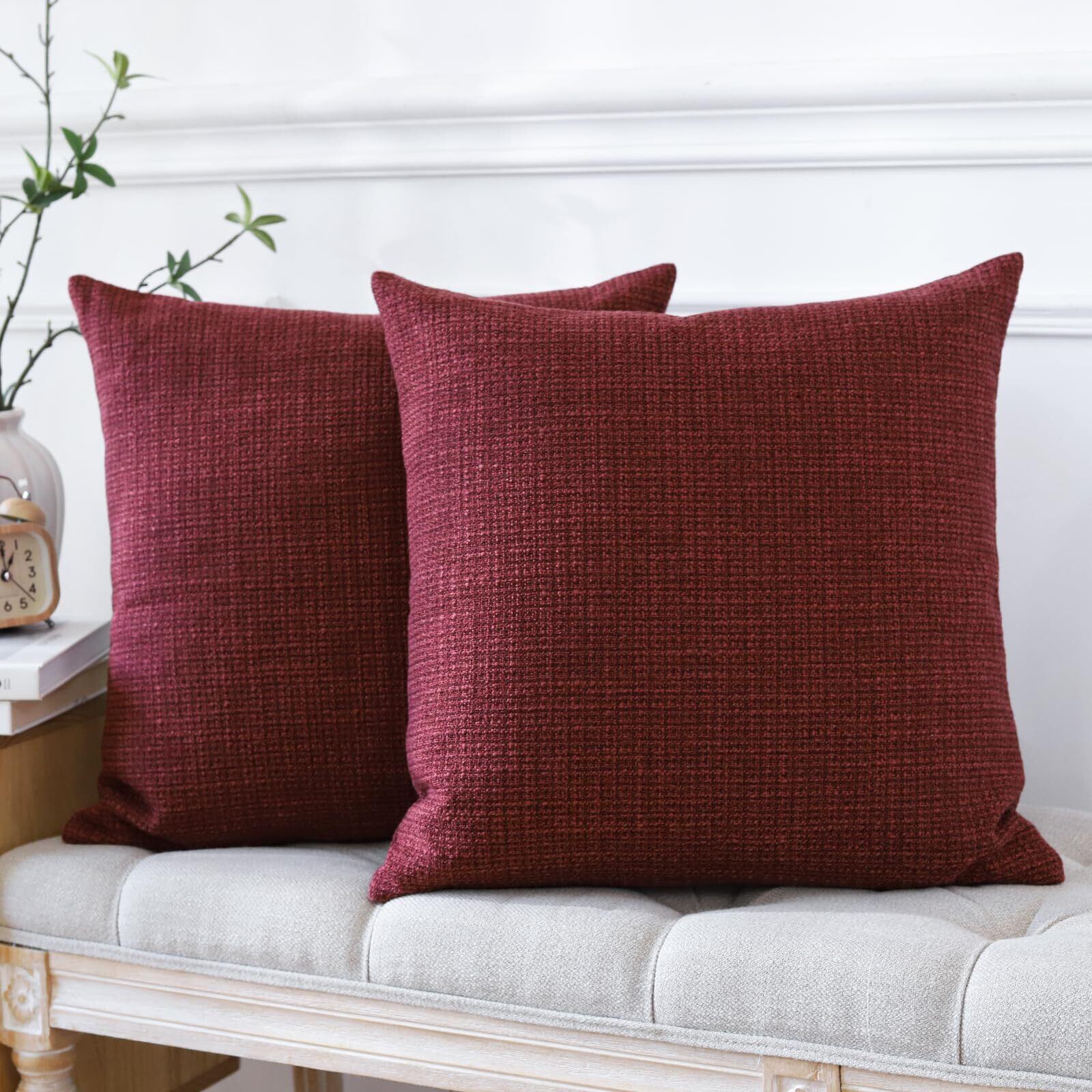 Otostar クッションカバー 北欧 2枚セット 麻 無地 おしゃれ 可愛い モダン ファスナー インテリア 装飾用ピローカバー (45x45cm, ワインレッド)