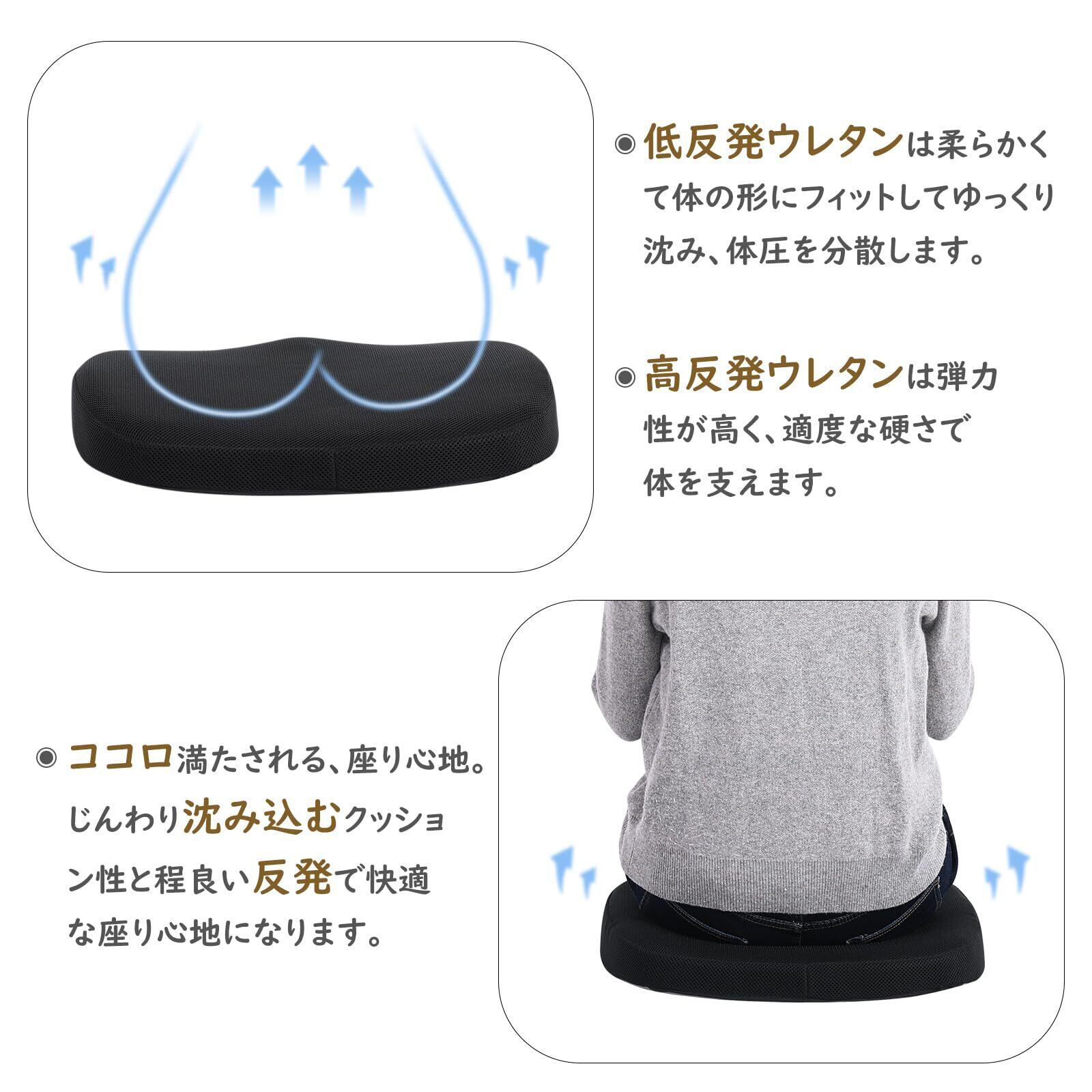 Baibu Home 座布団 クッション 大きめ 椅子 クッション 低反発+高反発 座布団 メッシュ 通気 45×42cm 2層構造 ブラック ゲーミングチェア オフィスチェア 車 シート クッション カバー洗える