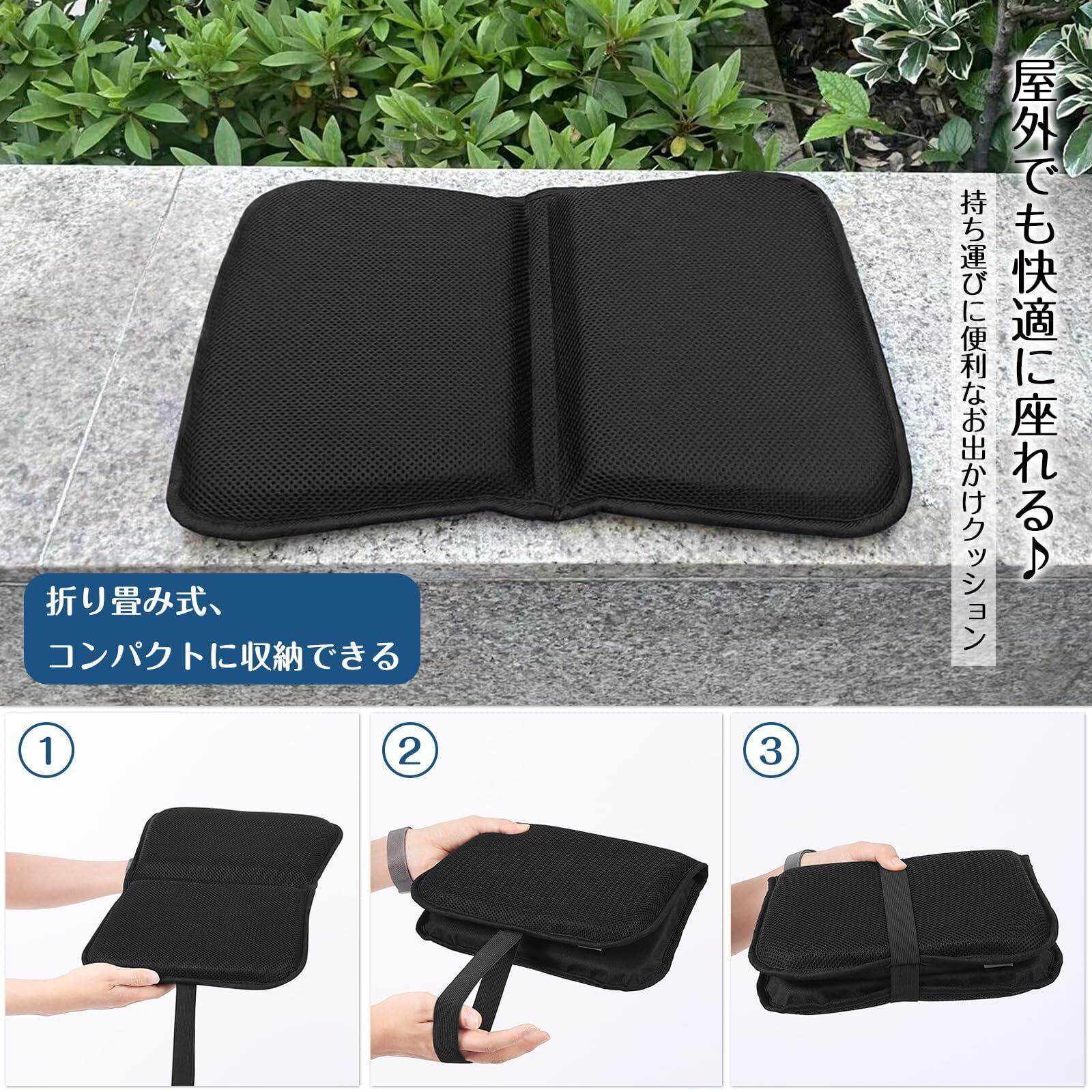 Shinnwaアウトドア用 折りたたみクッション 軽量 携帯便利 特許通気丸洗えるウレタン コンパクト 収納可能 40×27×3cm 夏用 蒸れない メッシュ素材 防水 地面の湿気対策 ピクニック/キャンプ/スポーツ観戦用/釣り用座布団 ブラック