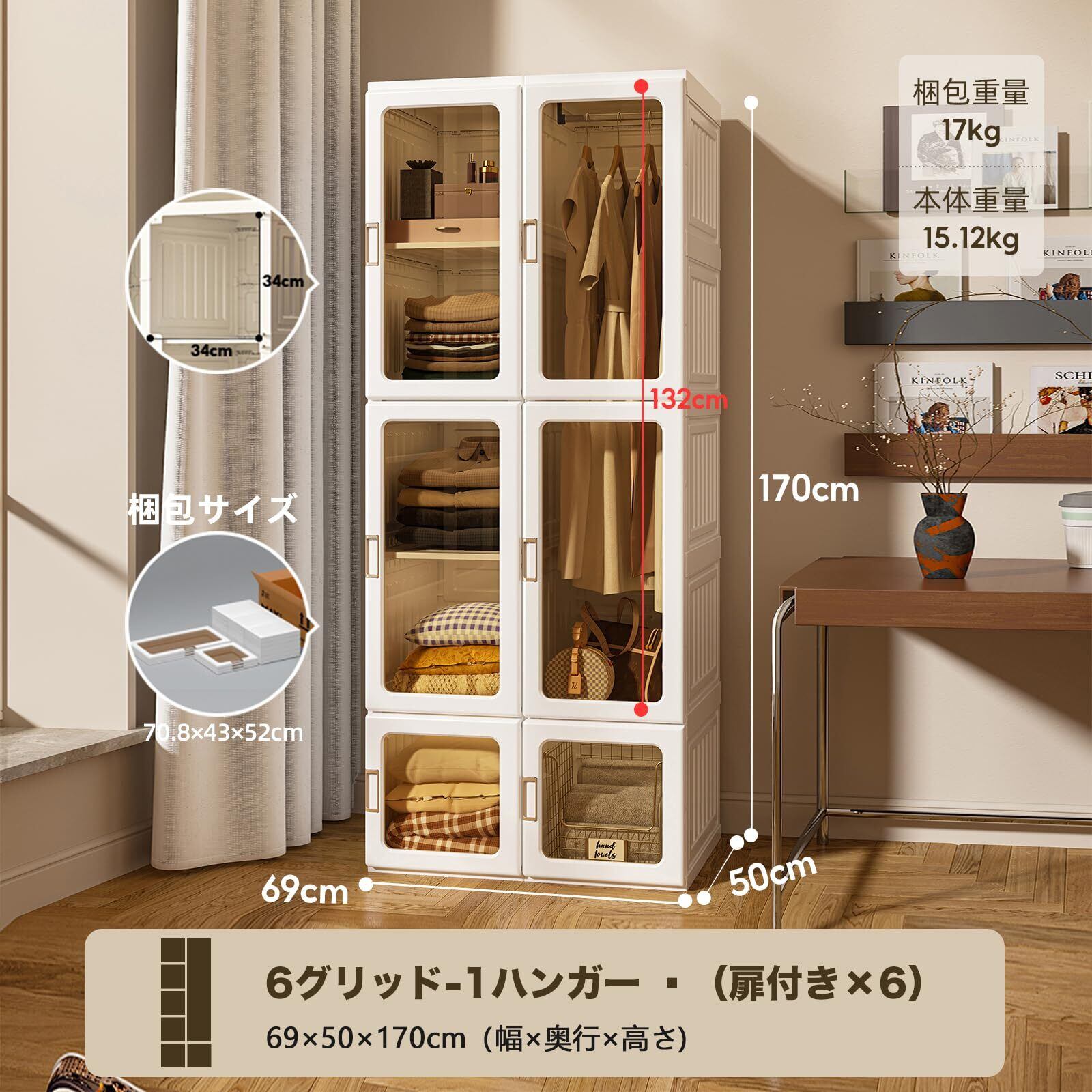 Mayi Box ワードローブ クローゼット 一体折りたたみ式 収納 扉付き 洋服ダンス ハンガーラック 大容量 衣類 雑物 防塵 省スペース 高耐荷重 新生活 おしゃれ (6グリッド-1ハンガー)