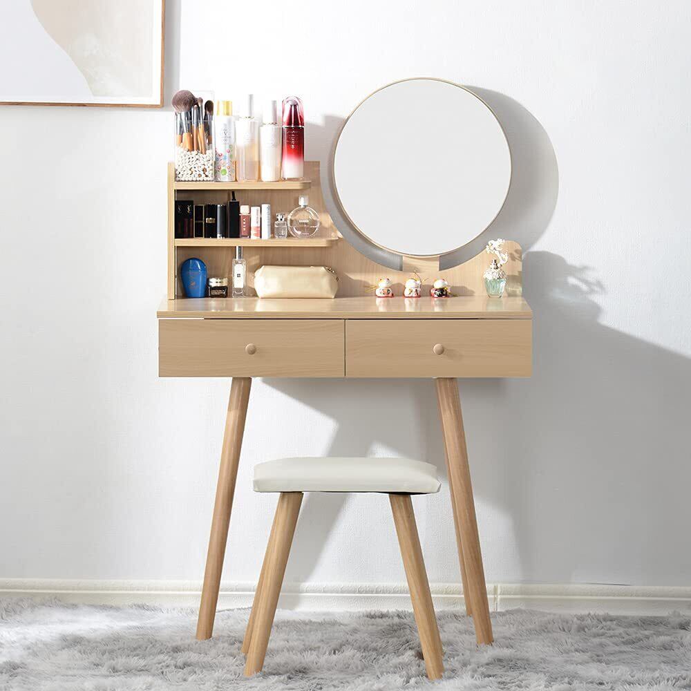 OSJ ドレッサー ナチュラル 40cm鏡 ドレッサーテーブル スツール付き コンパクト 椅子 セット 丸型 おしゃれ 姫系