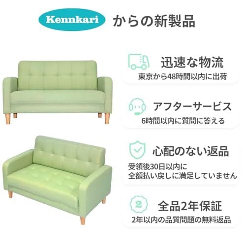 Kennkari ソファー 2人掛け ファブリック ローソファ 二人がけ 1人暮らし 小さい 軽量 シンプル 省スペース コンパクト ソファ 肘付き 天然木脚 おしゃれ お洒落 北欧スタイル 肘掛け 2人 簡単組み立て 幅約107cm (グリーン)
