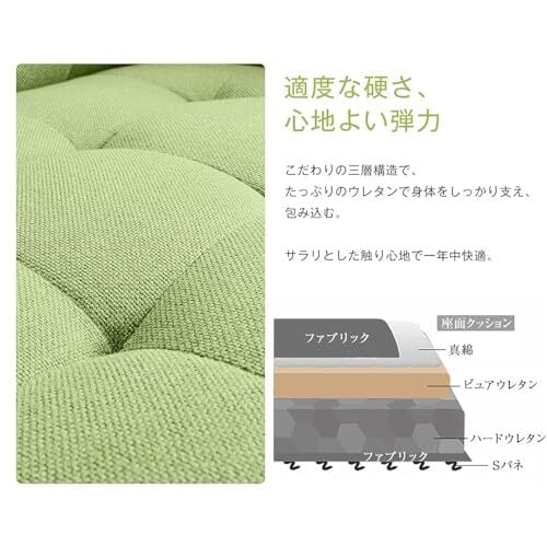 【在庫セール】Kennkari ソファー 2人掛け ファブリック ローソファ 二人がけ 1人暮らし 小さい 軽量 シンプル 省スペース コンパクト ソファ 肘付き 天然木脚 おしゃれ お洒落 北欧スタイル 肘掛け 2人 簡単組み立て 幅約107cm (グリーン) | Cherry Blossoms