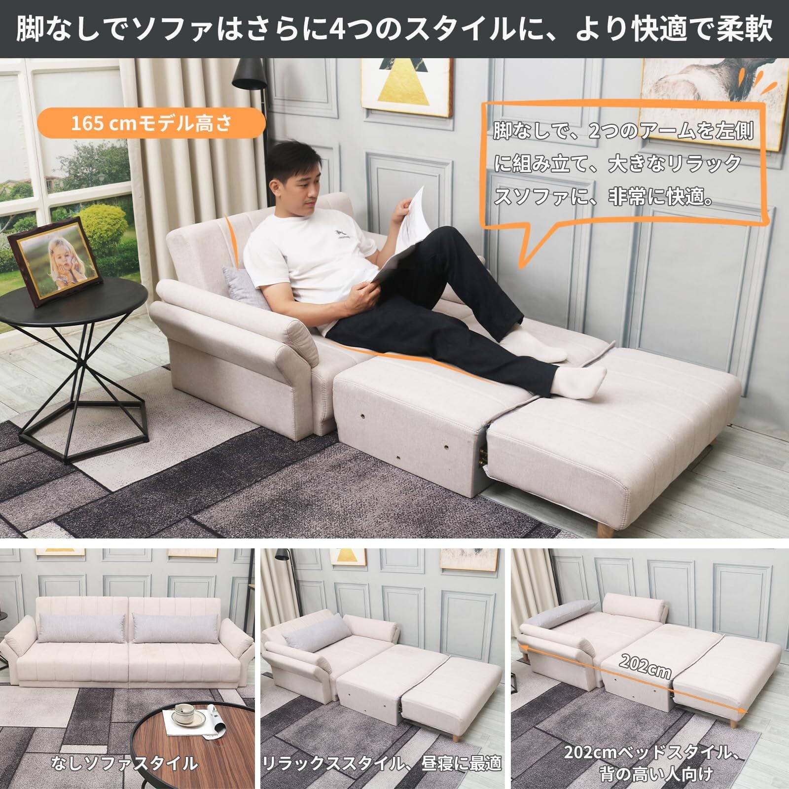 【変形超ロングソファベッド】:ソファの多機能デザインにより、特に背の高いゲストにも対応可能。最大202×75cmの超ロングソファベッドに変形可能なだけでなく、リラックスソファとしても活用でき、読書・スマホ・テレビ鑑賞などに最適な快適さを提供します。