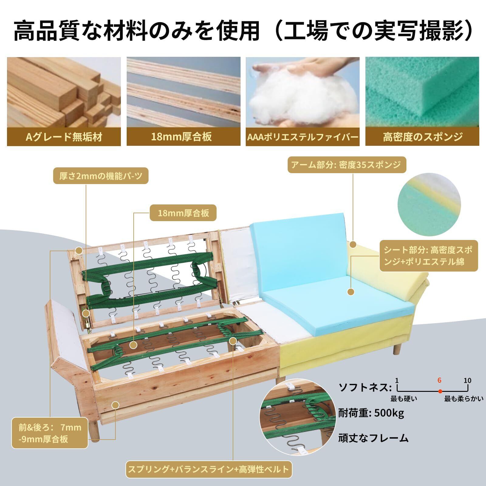 【快適&耐久】:ソファーフレームはAグレード無垢材+9/18mm厚い合板、座面と背もたれは高密度スポンジ、中間硬さ、腰枕と合わせて身体に良く支えられ、快適、丈夫、耐久。