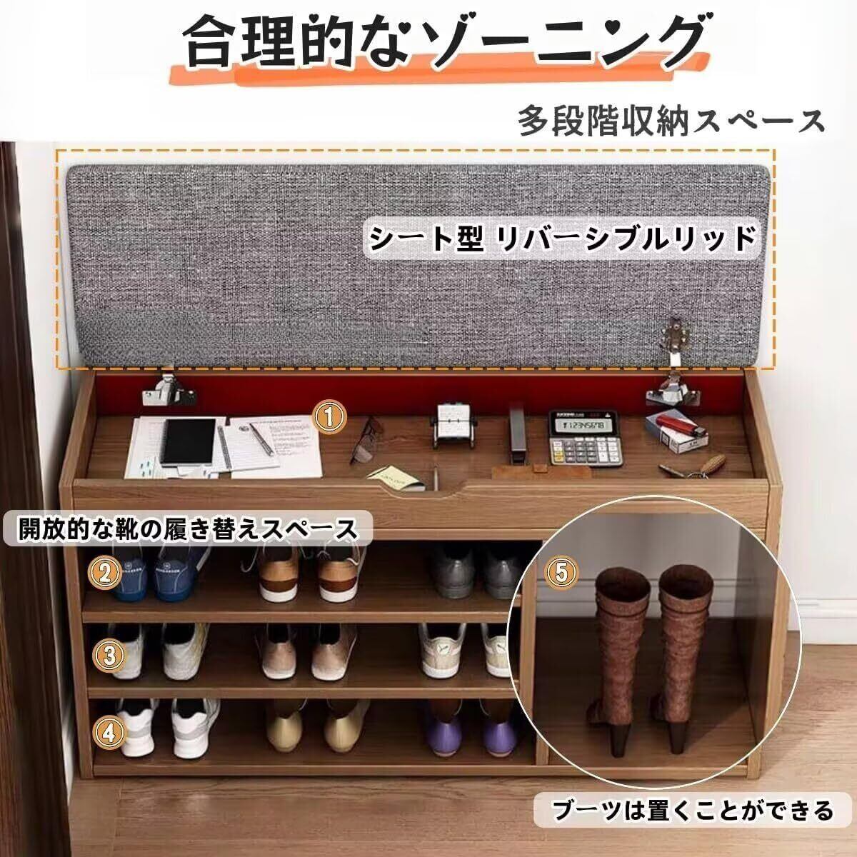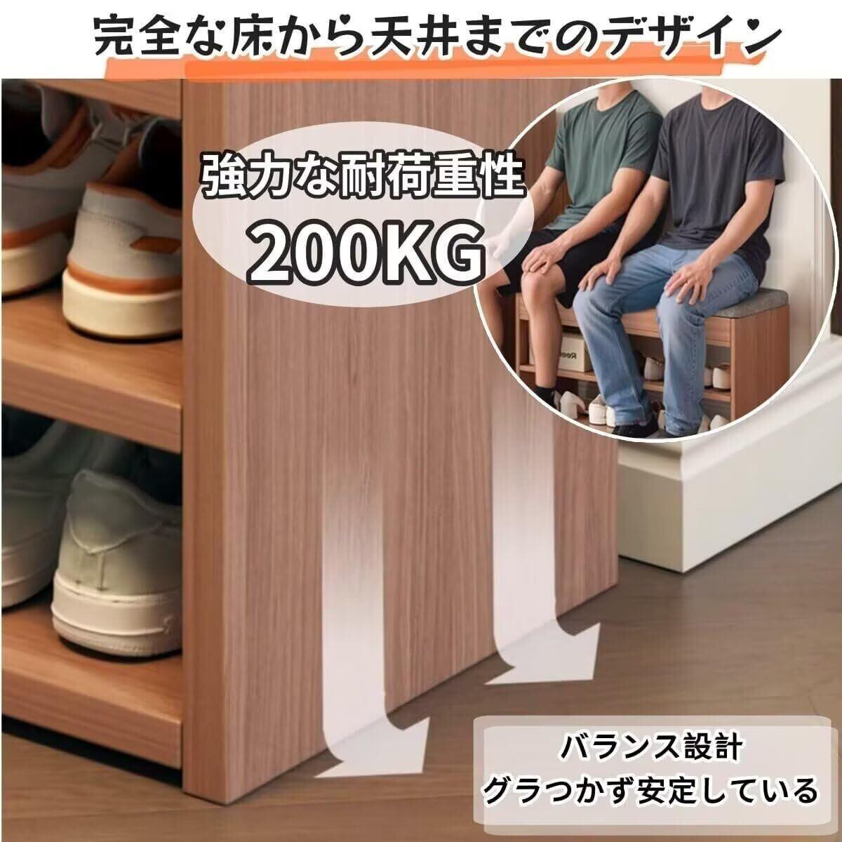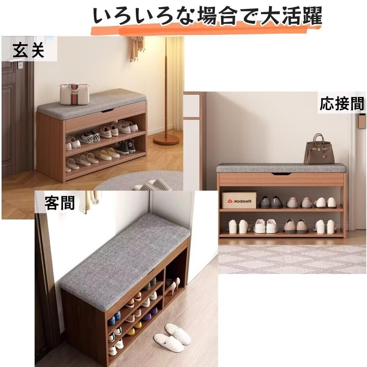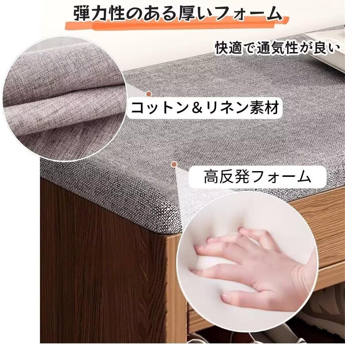 【安定した頑丈な構造】この玄関ベンチは高品質の木材で作られます。フロアスタイルデザインで力が均等にかかって、安定して揺れません。クッションは高反発のスポンジを使って、通気性がよくて、変形しにくいです。季節に問わず、心地よい座り感を持ちさせます。