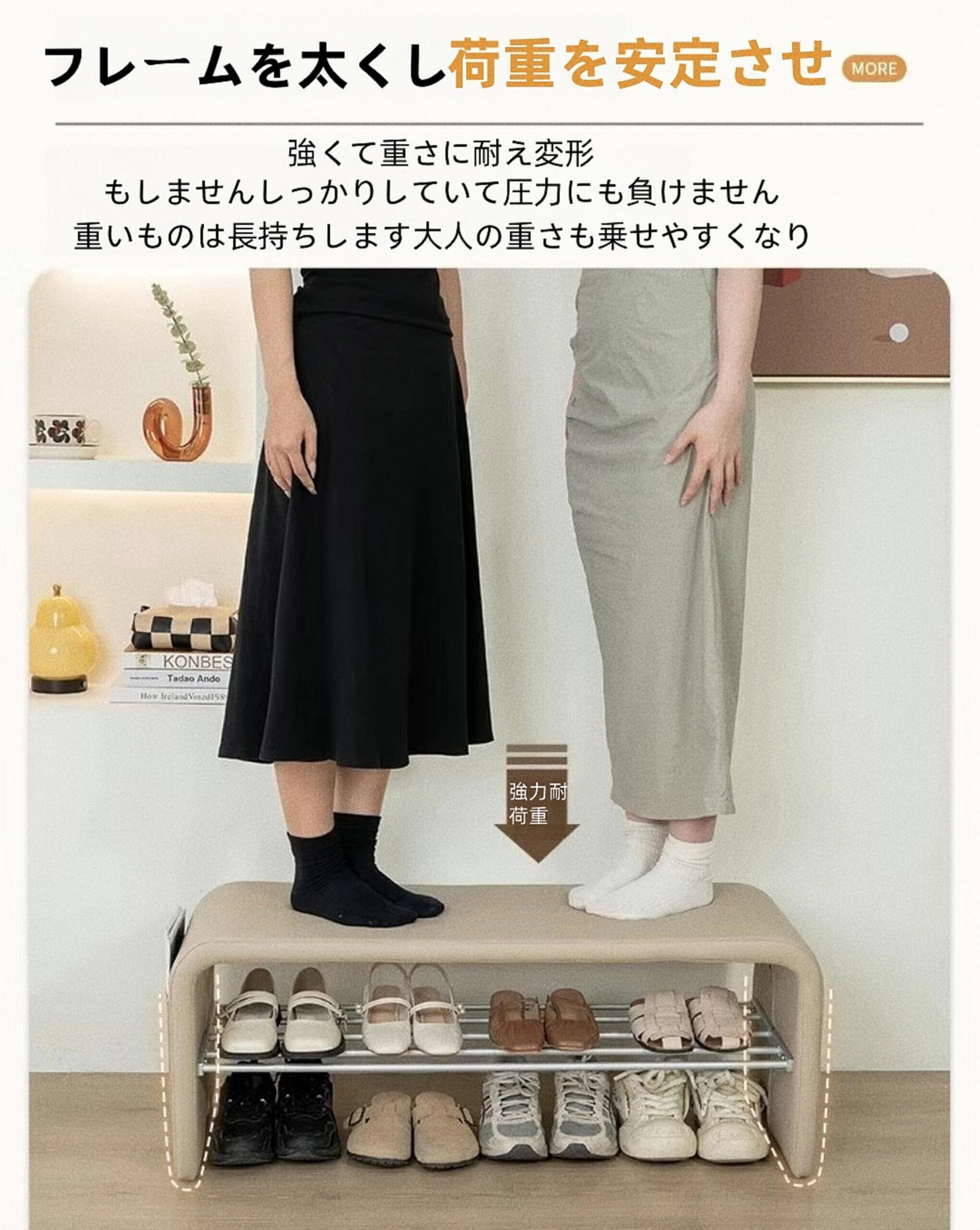 便利な収納:靴箱 玄関腰掛け スツールの脚の両側に小さなポケットがデザインされています。毎日読む雑誌から、お出かけ時に必要な小物まで、気軽に収納できます。座って靴を履き替えるときに、手を伸ばして靴を取ることができるので、生活がより便利で整然としたものになります