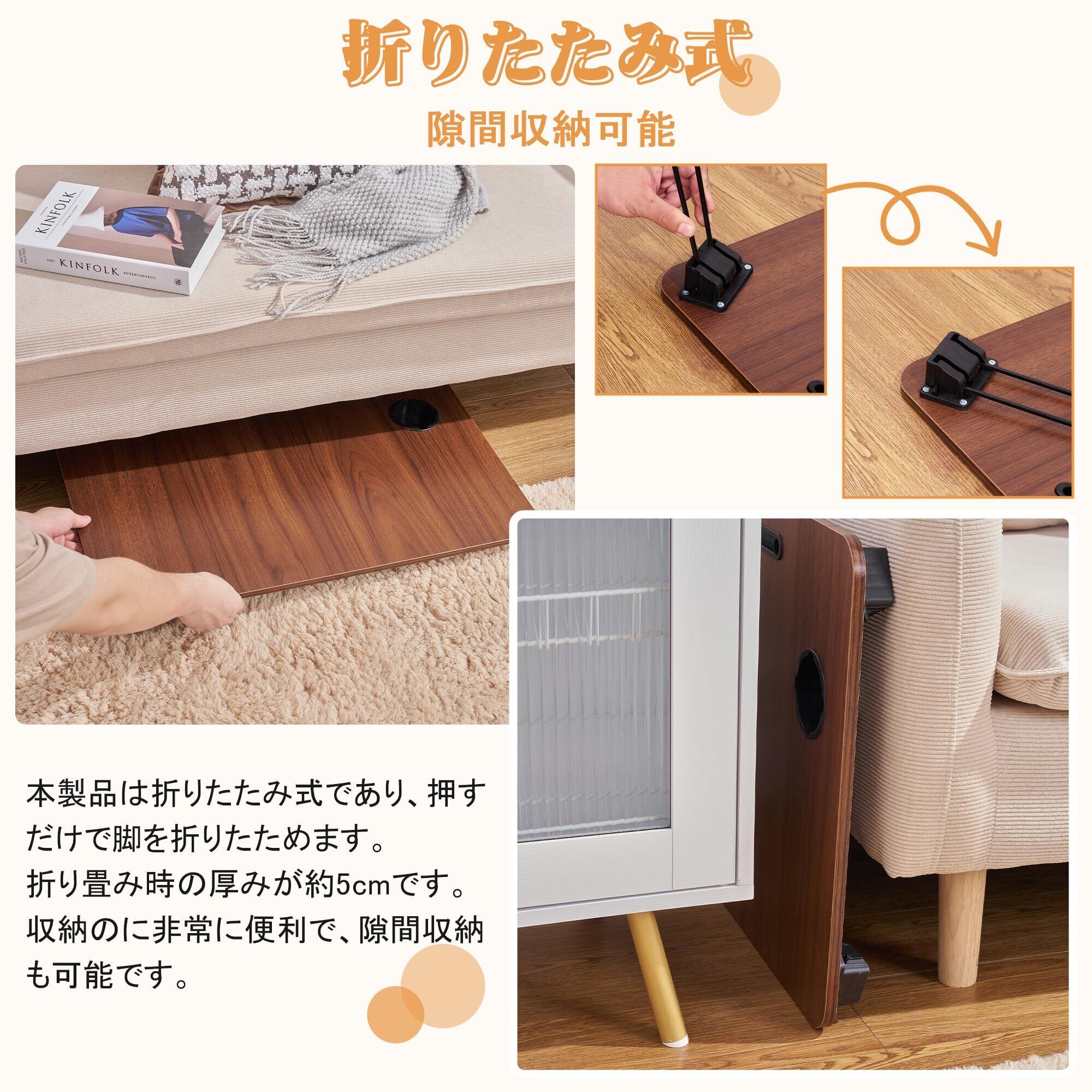 VECELO ローテーブル 折りたたみ式 2つスロット付き