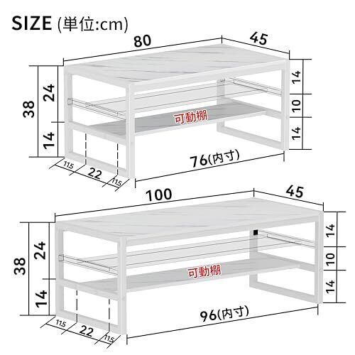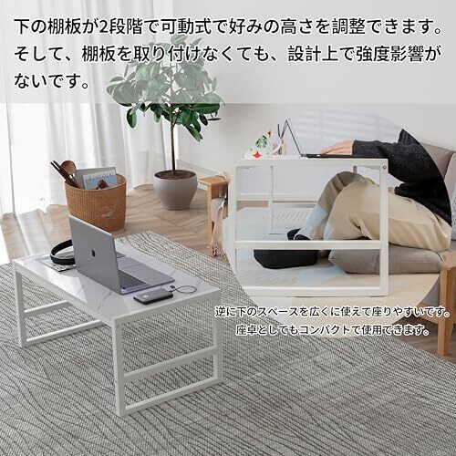 【人気商品】LunarLight ローテーブル 幅80奥行45高さ38cm センターテーブル リビングテーブル コーヒーテーブル 机 座卓 コンパクトデザイン 収納棚板の高さ可動式 床傷防止用のアジャストフェルト付き 強度安定 錆び防止 耐摩耗性 防水性 耐熱性機能 (大理石調ホフイト, 幅80cm) | Cherry Blossoms