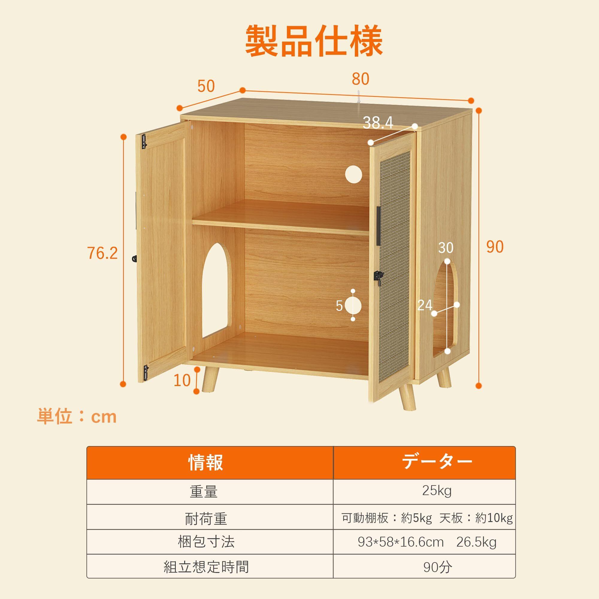 【新春セール】DiDuGo 猫キャビネット 幅80 サイドボード 猫トイレ収納家具 ペットハウス キャットハウス サイザル麻 猫レストルーム 猫砂が飛散防止 リビング収納 玄関収納 扉付き 幅80×奥行50×高さ90cm おしゃれ ナチュラル | Cherry Blossoms