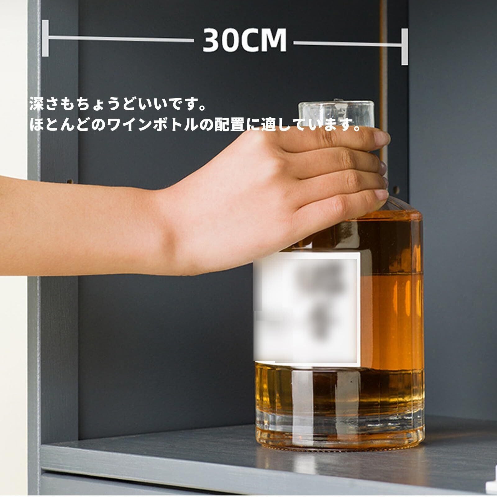 ちょうどいい深さ:お酒 ラックさまざまなサイズのワインボトルの保管ニーズを考慮して、ワインキャビネットのサイド棚は奥行き33CMになるように慎重に設計されており、ほとんどの標準的なワインボトルサイズに完全にフィットします。このレイアウトにより、ワインボトルを安定して配置できるだけでなく、スペースの利用効率が向上し、隅々まで有効に活用できます