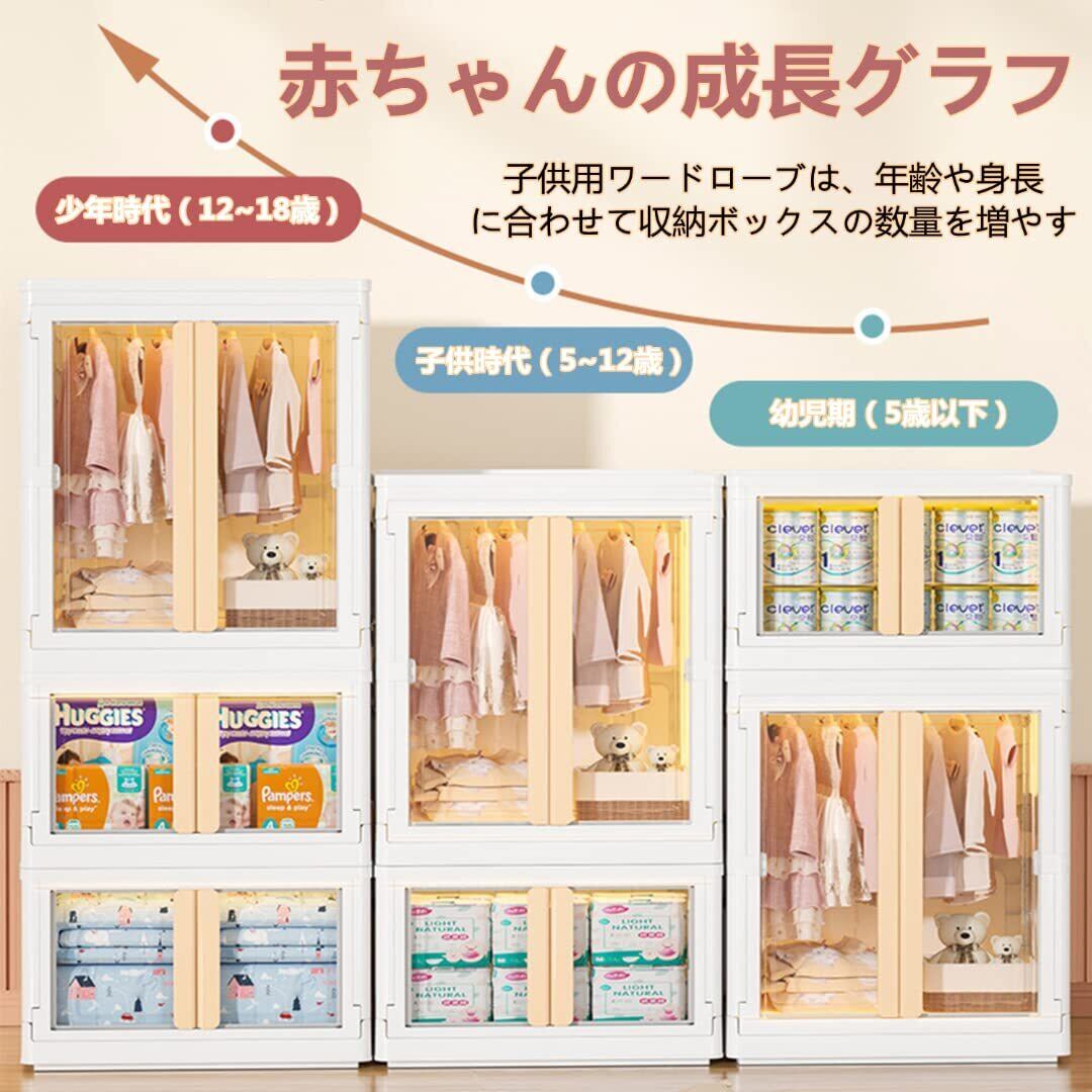➤【大容量】子供用ワードローブは衣類ずつ収納可能。春や夏な衣類は約70着、薄い布団約35枚収納可能;秋や冬の衣類は約30着、厚い布団約3枚収納可能。もし、子供の用品が多いあれば、ワードローブと収納ボックスや収納ボックスと収納ボックスを必要に応じて組み合わせて使用できる。
