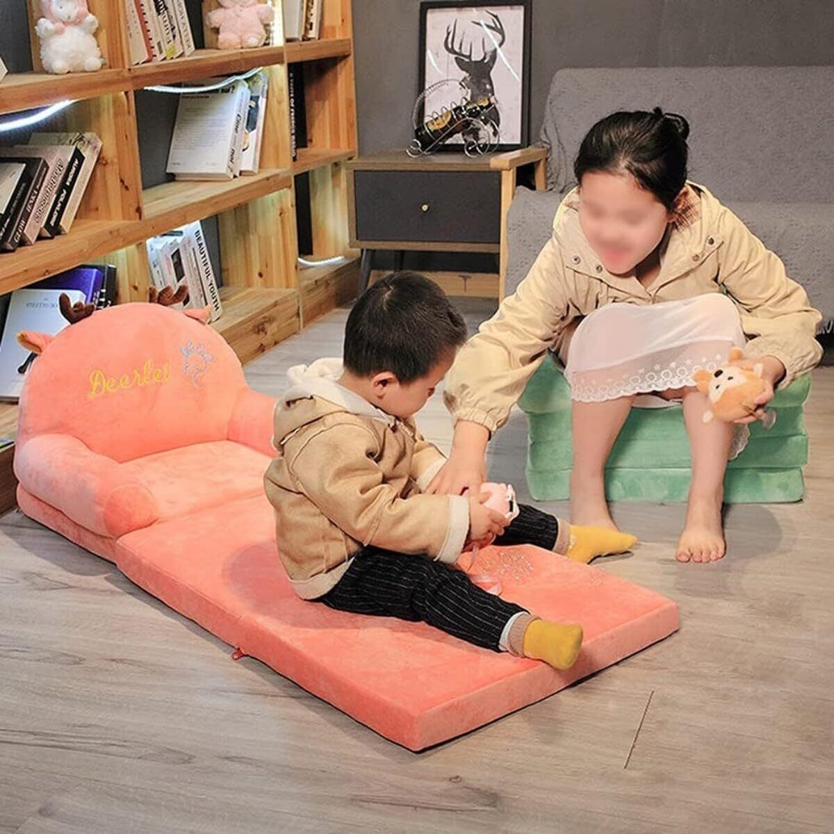 Kziazoi キッズソファーベット 子供用ソファー ベビーソファー 折りたたみ 座椅子 ふわふわ 1人掛け かわいい かわいい動物 (四階です,オレンジ色)