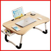 折りたたみ テーブル 多機能&軽量デザイン 折りたたみ式 ミニテーブル - ベッドテーブル/ローテーブル/PCデスク/キャンプ用 ドリンクホルダー・タブレットスタンド・引き出し付き 子供用勉強机から在宅ワークまで 省スペースで便利な収納 大容量表面 省スペース 簡易テーブ (クルミ)