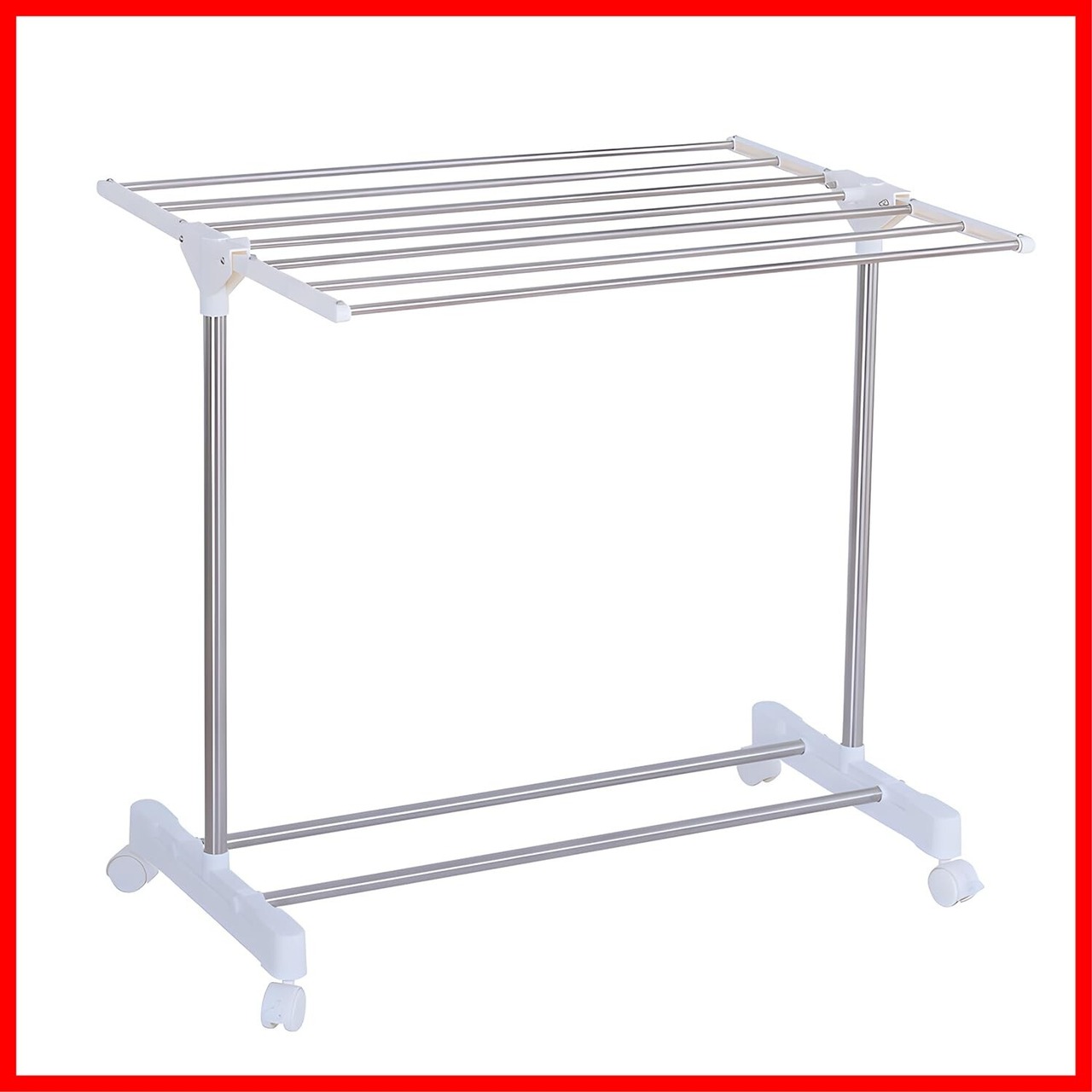 Roseelk バスタオル掛け 物干しスタンド 洗濯物干し 室内物干し T型 折りたたみ式物干しラック タオル 靴下 小物 物干しラック ステンレスフレーム 小型 物干しスタンド 幅75cm キャスター付き 簡単に移動できます 頑丈