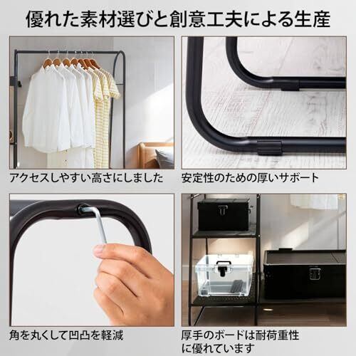 【幅広く使用】寝室だけでなくリビングやベランダなど様々な場所で簡単に移動して使用できる多機能クロークラックで、逆 U 型構造による安定した支持で自由に移動してさまざまな収納ニーズに応じられ、日常生活をより便利で快適にします。
