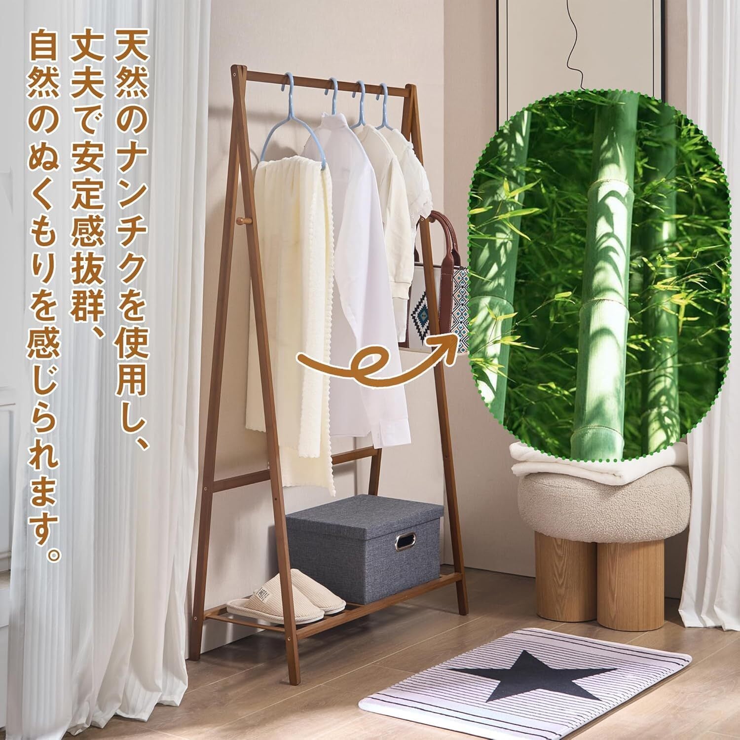【高品質素材】天然ナンチクを使用し、耐久性と安定性を重視して設計されています。強度のあるフレームとしっかりとした脚部が、重たいコートや荷物を掛けてもぐらつかない安心の安定感を提供します。
