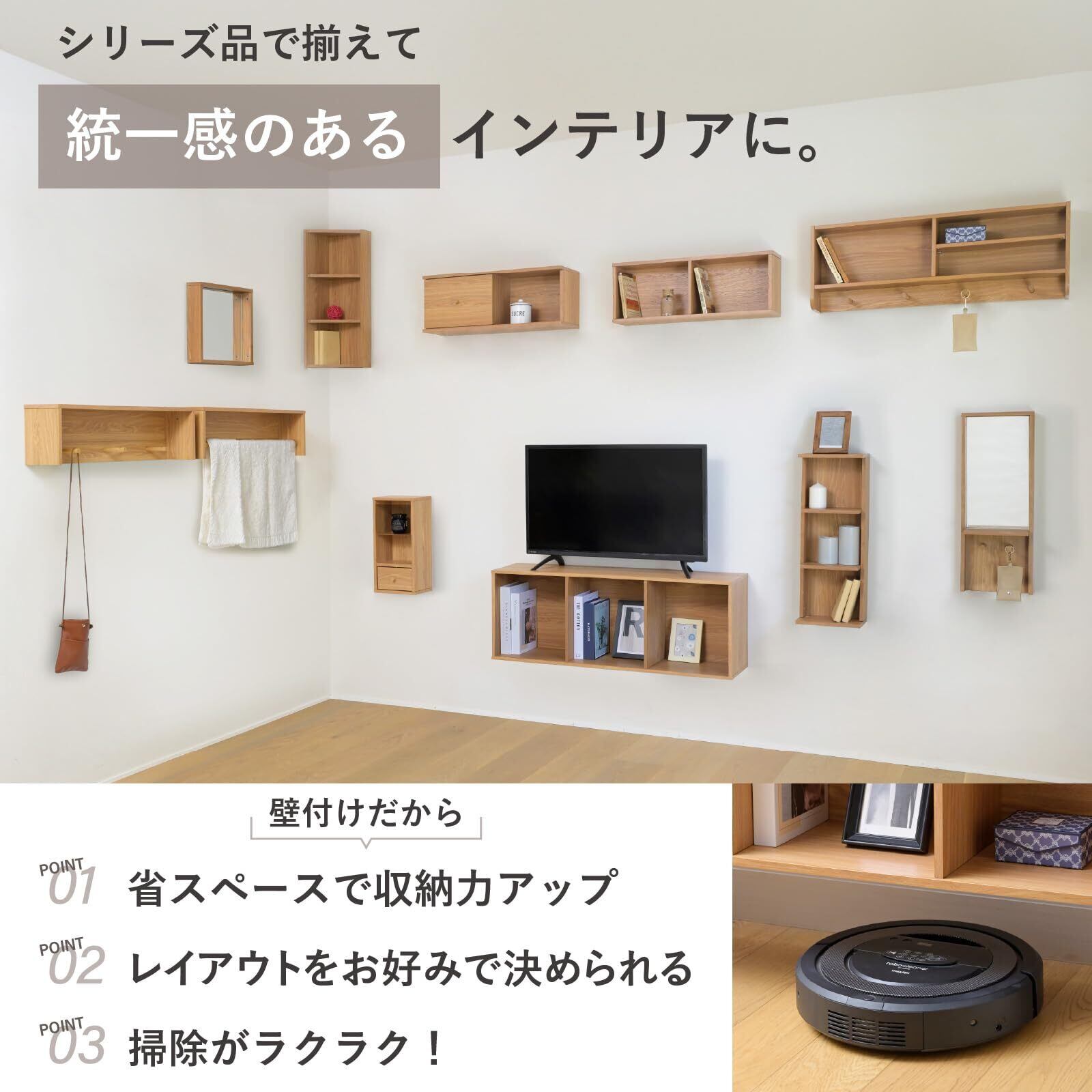 【浮かせる収納】専用ピンで石膏ボードに取り付けられる壁掛け家具です。※板壁や土壁・コンクリート壁には使用できません。