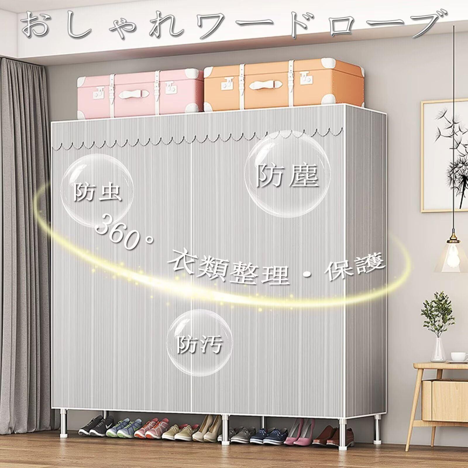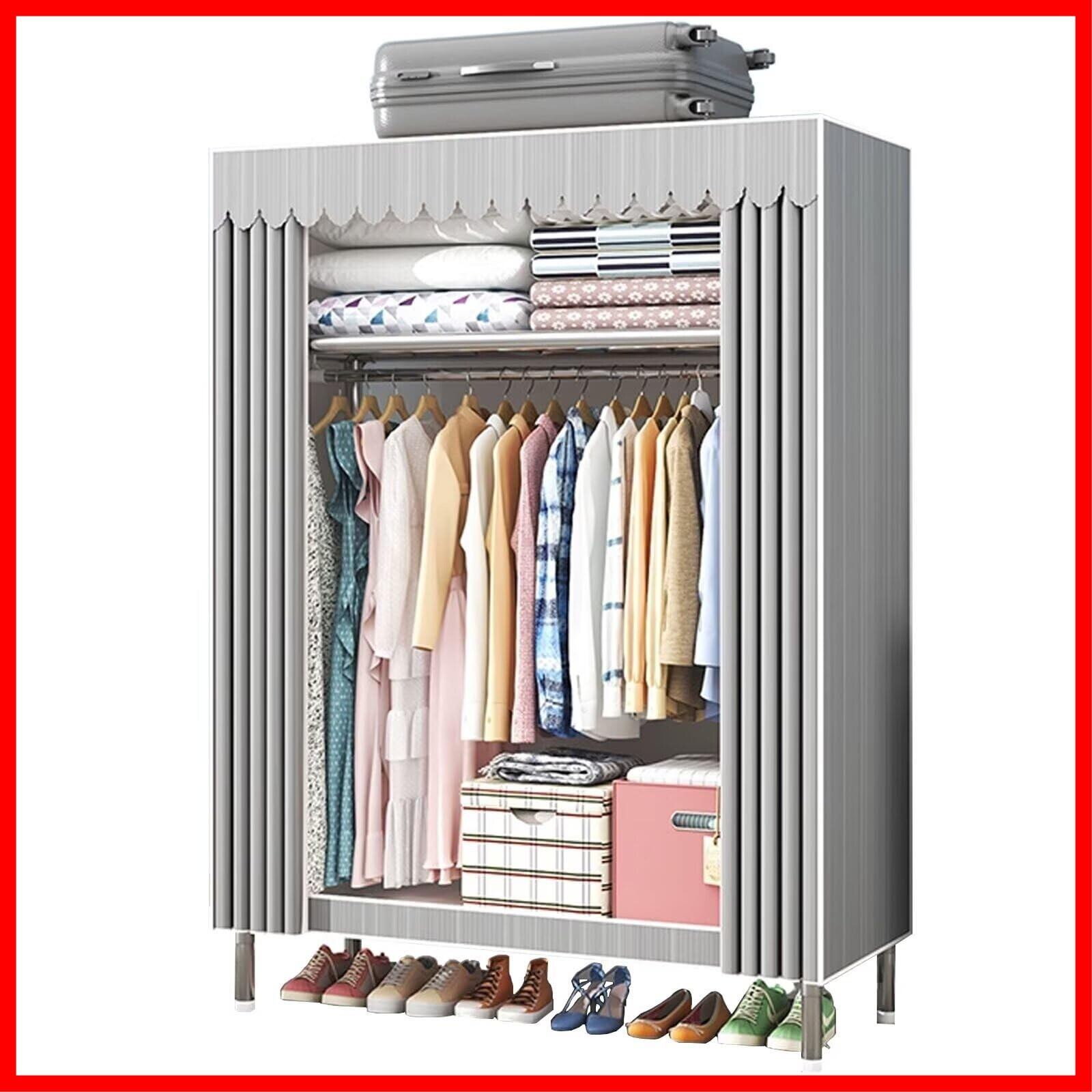 【大容量】1.ワードローブに長さや短の衣類を全部掛けることができて、夏や冬によって約20~60着衣類を収納できます。2.ワードローブの上部と下部は、追加の保管スペースとして使用できます。キルトとスーツケースもワードローブの上部に配置できます、靴やブーツを下部に収納しやすいです。
