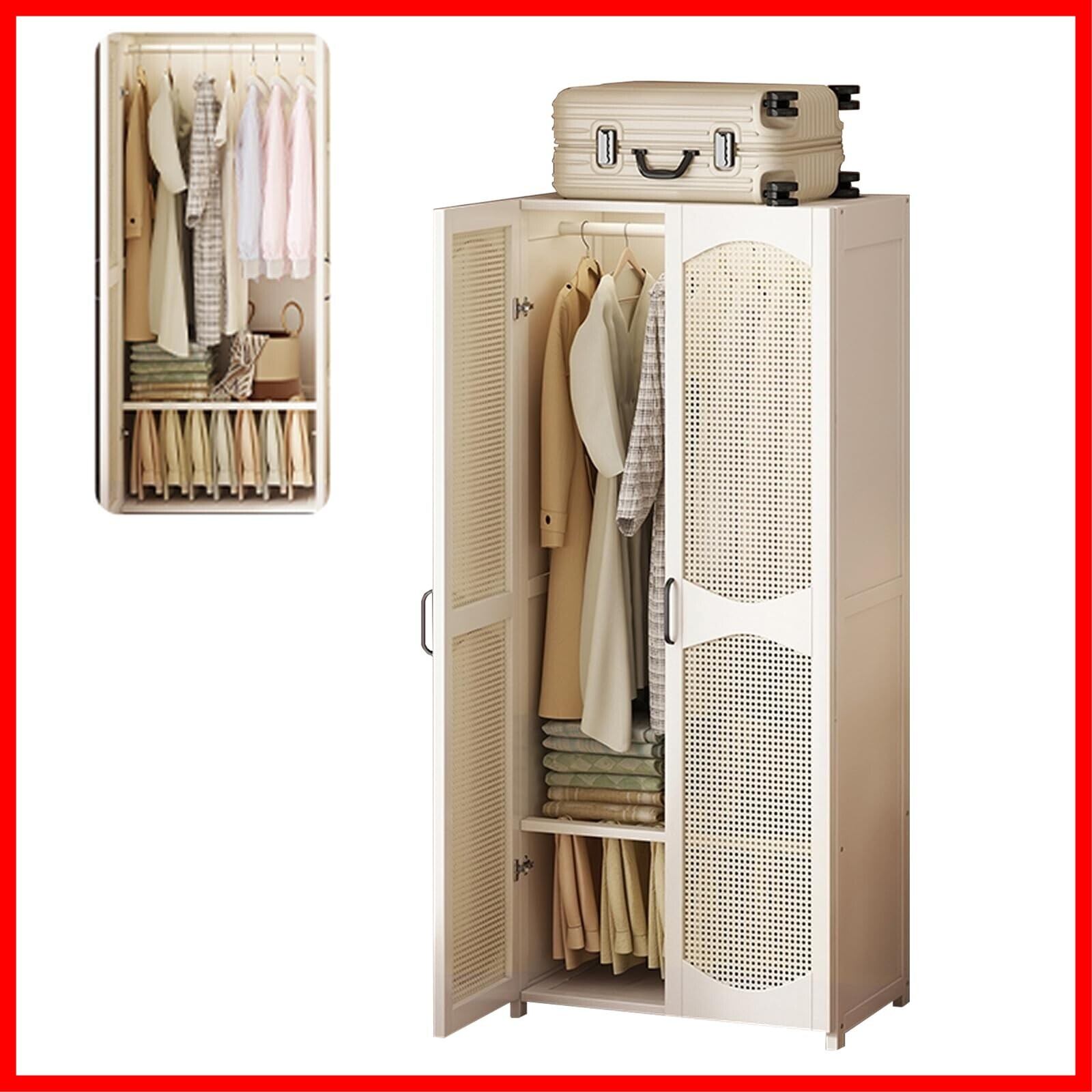 【扉付き】ワードローブは細密な藤編りの扉で作られており、通気性に優れ、カビ、ほこり、虫を避けます。衣類の保護だけでなく、嫌な臭いも防ぎます。衣類を清潔で衛生的な状態に保ちます。お手入れも簡単で、汚れている場合は、湿らせた布で直接拭いてください。