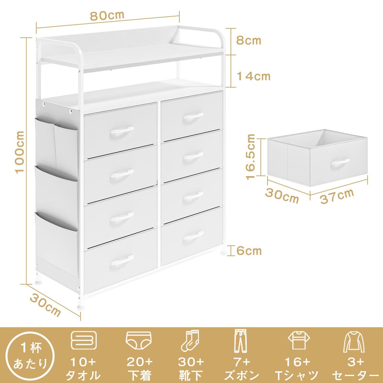 REAHOME 2段棚 収納チェスト 側面収納ポケット タンス 洋服 衣類 収納 箪笥 おしゃれ 収納棚 布製引き出し 整理タンス キャビネット リビング ハイチェスト 脱衣所 洗面所(ホワイト)