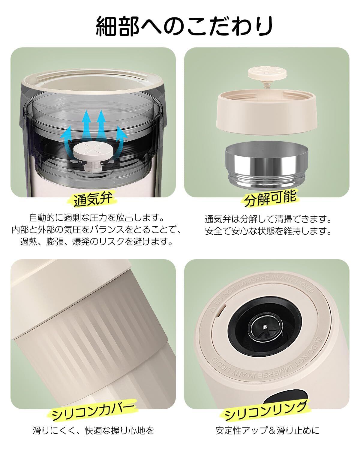 【製品仕様】◆本体サイズ:約W9.3×D9.3×H19.6cm ◆材質:SUS304、PP ◆容量:300ML ◆電源コード長さ:約50cm ◆本体重さ:約590g ◆消費電力:250W ◆電源:AC100V(50/60Hz) ◆期間:最大お買い上げ日より1年間。商品に基本と長期間のカスタマーサポートを提供しますので、万が一の場合、初期不良や破損などの不具合が発生してしまいましたら、お気軽にお問い合わせください。24時間以内にご対応させていただきます。ご注意:本製品は充電式ではありません。