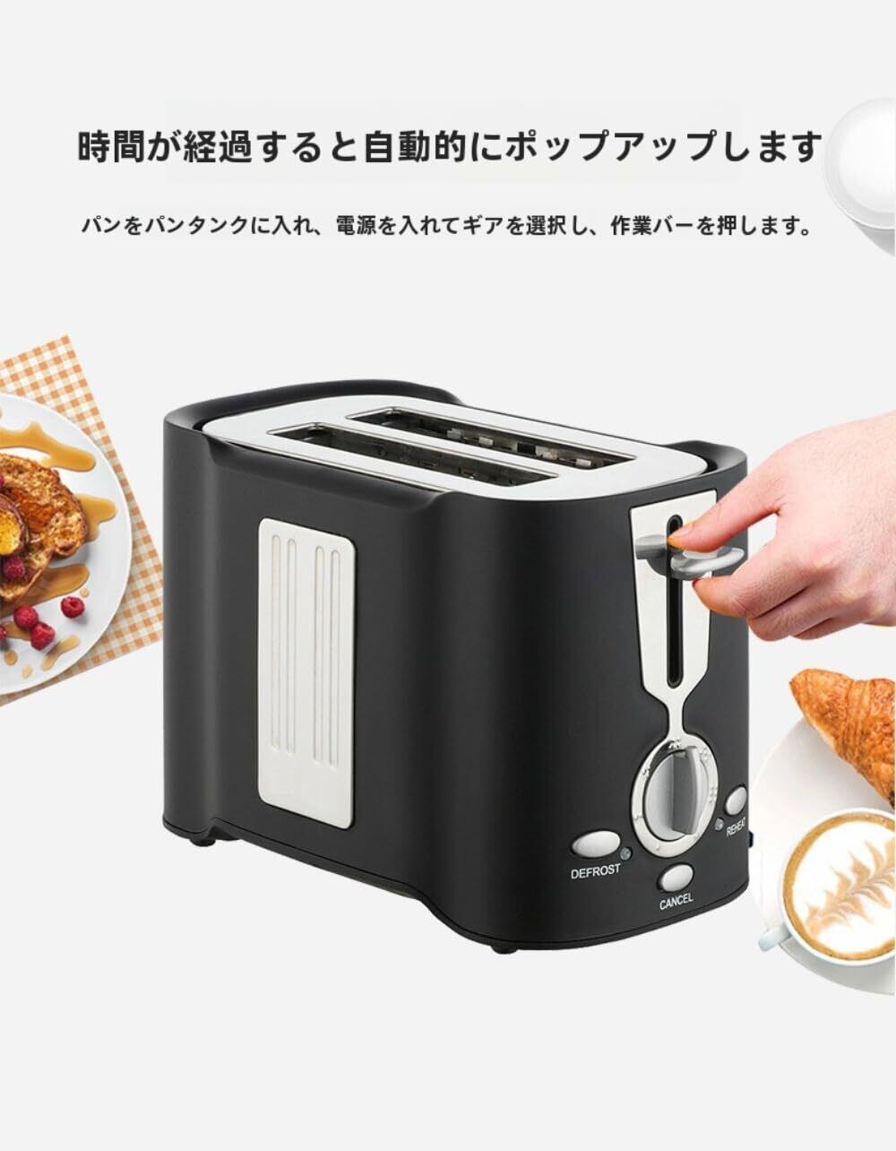 このトースターはポップアップ式の設計を採用し、家庭用と業務用の両方に使用可能です。360 度焼き上げ機能が搭載されているため、パンやケーキを均等に焼くことができ、表面に美しい焼き色を付けることができます。高速加熱性能に優れ、短時間で焼き上げることができるため、朝の忙しい時間帯やビュッフェの忙しいシーンでも効率的に対応できます。インジケーターライトが付いているため、加熱状況を一目で確認することができ、使い勝手が非常に良いです。独立したトレイが装備されており、パン屑を簡単に取り除くことができ、メンテナンスが簡単で清潔に保ちやすいです。家庭での朝食作りはもちろん、業務用としてビュッフェの現場で使用することも可能で、大量のパンを短時間で焼き上げることができます。また、キャンプでのパンの作成にも適しており、屋外でも美味しい焼きパンを楽しむことができます。パントースターとしての基本機能はもちろん、ケーキの焼き上げにも対応しており、多用途に活用できる優れた製品です。