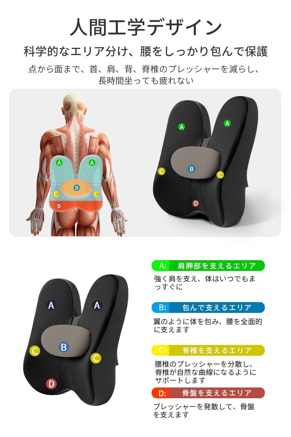 【新しくアップグレードされた腰クッションと座布団の統合、座りがちな疲れない】該当クッションは腰クッションと座布団の2点セット品です、腰からお尻まで体に一体化的なサポートをあげます。長時間座っていると、腰椎の損傷につながります、この腰クッションと座布団はあなたが正しい姿勢を維持するのを助けることができます、腰をしっかりと支え、腰背にフィットして自然な曲線を保ち、腰部と臀部への圧力を軽減して、身体をよりリラックスさせることができます。