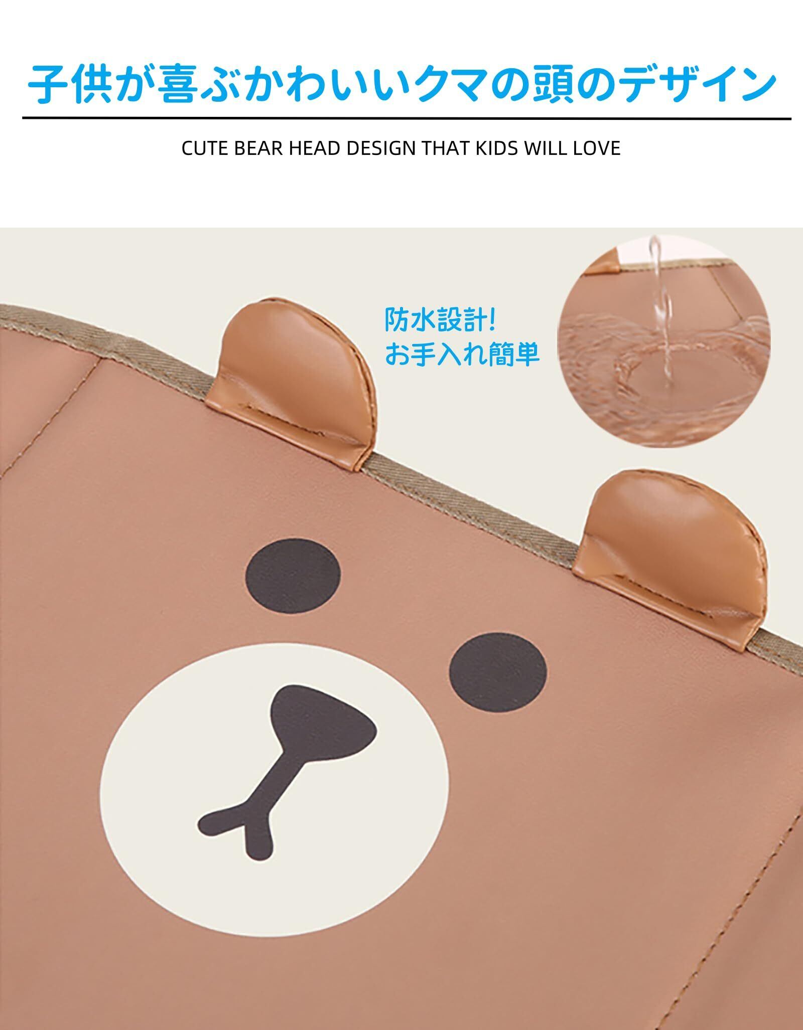 【人気のクマ柄デザイン&安心素材】かわいいクマのイラストが子どもの興味を引き、楽しい車内空間を演出。抗菌・防臭加工の高密度メッシュ生地を使用し、汗や汚れに強く、乳幼児が触れても安全な低刺激素材です