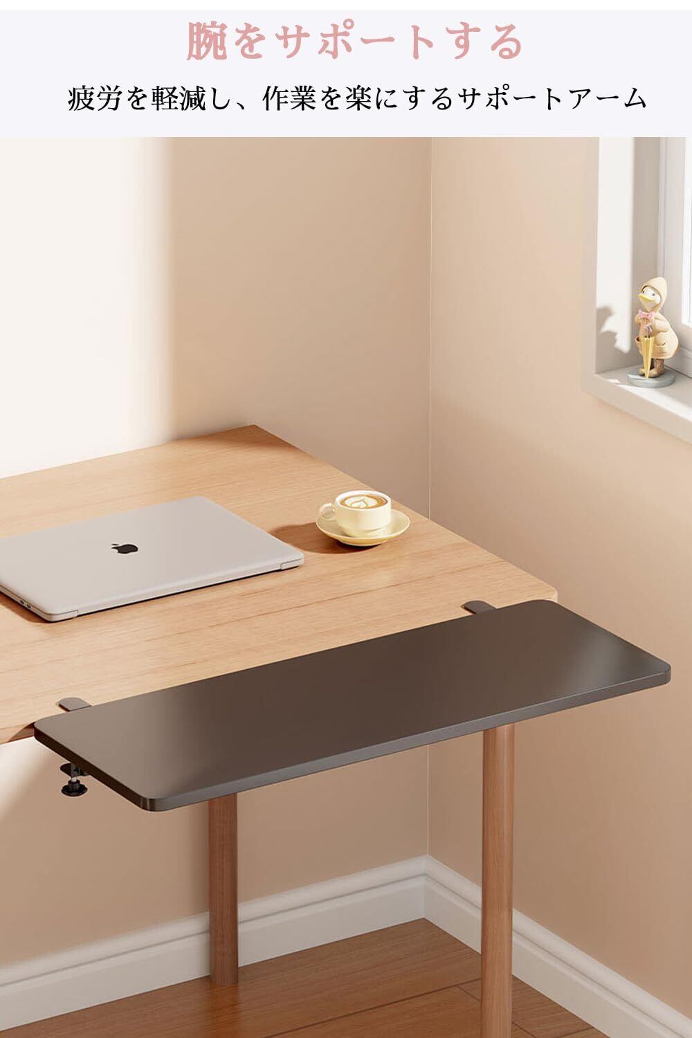 2:デスク拡張 & 拡張ボード:このデスクエクステンダーは、既存のデスクを簡単に拡張できる拡張ボードです。幅広いサイズに対応し、さまざまな用途に適しています。