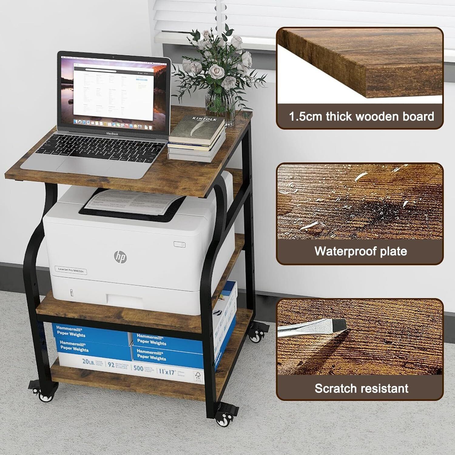 PUNCIA 3段 プリンター台 幅60cm 奥行50cm 高73cm ワゴン キャスター付き プリンターラック 収納棚 大型 プリンター 置き 台 省スペース プリンター棚 机下収納 木製ラック 取り付け簡単 100kg高耐荷重 オフィス/ホーム