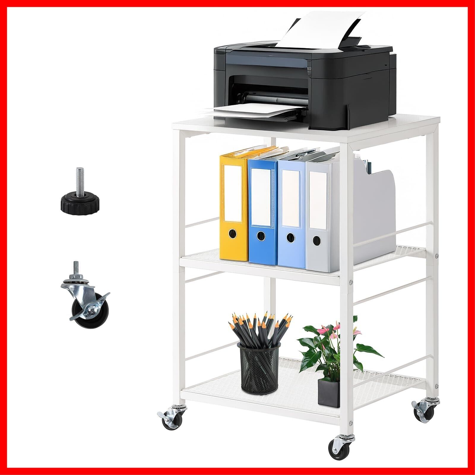 プリンターラック 台 ワゴン 3段 キャスター付き 棚付き ベッドサイド テーブル プリンタースタンド 卓上収納 机上&机下 収納ラック おしゃれ ホーム オフィス リビング キッチン 幅42×奥行32×高さ55cm ホワイト