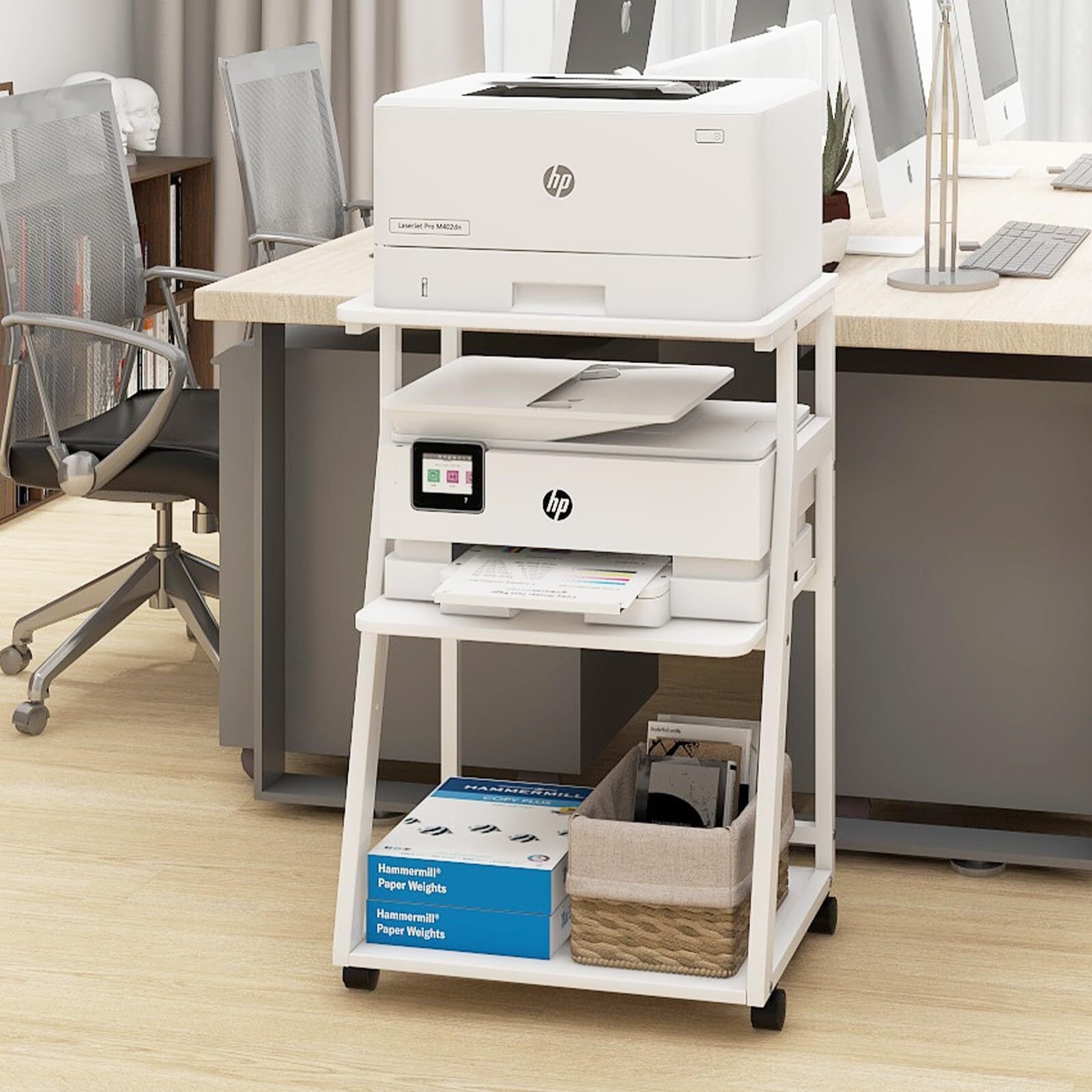 【新春セール】PUNCIA 3段 プリンター台 幅50cm 奥行40cm 高75cm ワゴン キャスター付き プリンターラック 収納棚 大型 コピー機 置き 台 省スペース 調節可能中棚 木製ラック 取り付け簡単 120kg高耐荷重 オフィス/ホーム | Cherry Blossoms